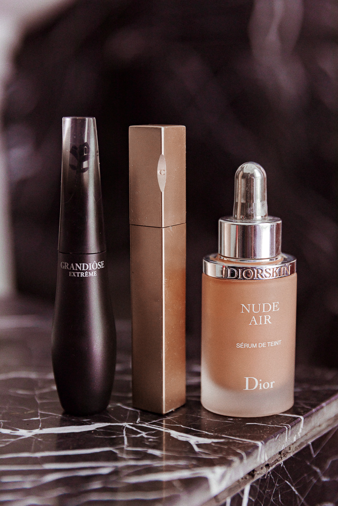 For foundation, I use Diorskin Nude Air Sérum in 020. It covers everything, and doesn’t look like you’re wearing anything, but it makes your skin look perfect. I’ll wear this all the time because I have some spots and it makes my skin smoother. Tonight, I might do a black liner look. Why not? For that, YSL Dessin Du Regard Eyeliner Pencil is great, and I still use Avène Couvrance Tinted Compact SPF 50 for bronzer. I'd never wear a lip and eye together unless somebody else is doing my makeup. It looks good in pictures but I think it can be overdone, so if I’m wearing lipstick I prefer to be natural everywhere else, even less mascara. Sephora Always Red is definitely the best red lip. I don’t usually do anything to my hair when I go out, but if I’m feeling fun I sometimes like braided pigtails with a red lip so that it’s not too youthful. I like that combination. And this Tom Ford lipstick in Scarlet Rouge, the color is beautiful. It’s intense, like a wine-stain. If I drink red wine, my lips always get super dark, so this is perfect.