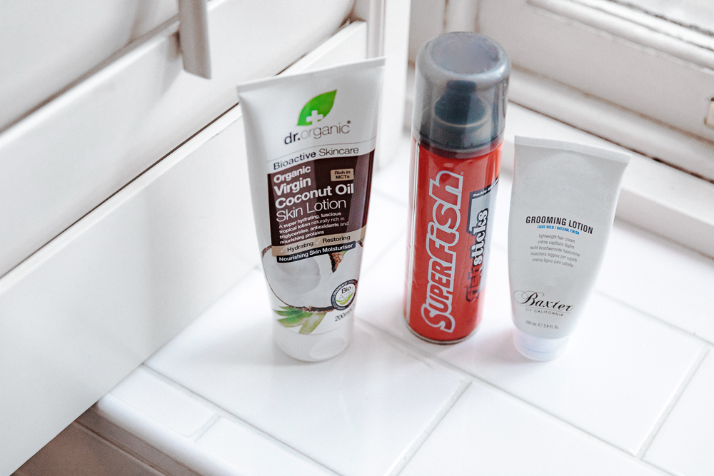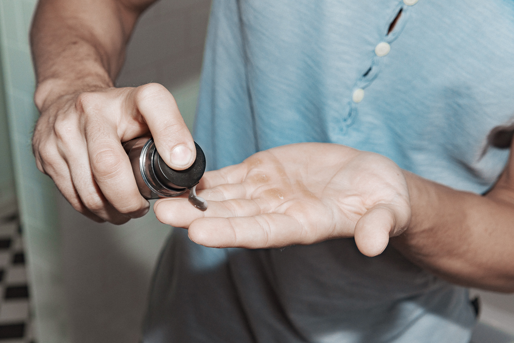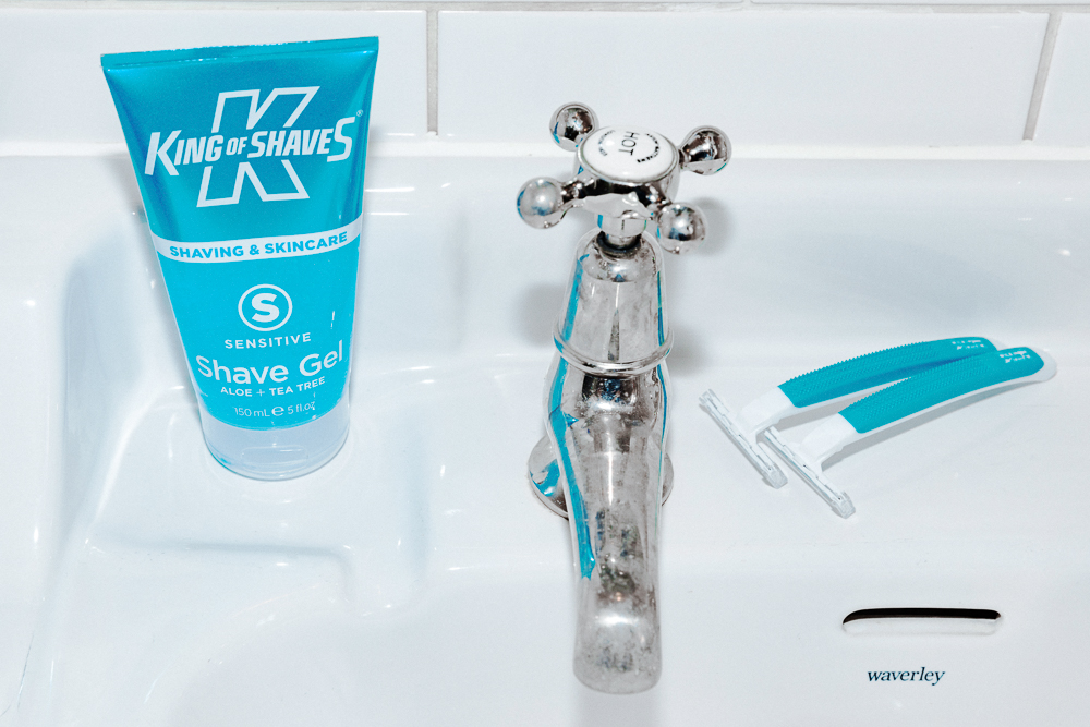Then I always shave—I don’t have much facial hair, so it looks better when I’m clean-shaven. I use disposable razors from Wilkinson Sword. I never get razor bumps, not even with those, that’s why I use them. A gel shaving cream is also good. King of Shaves Shave Gel Sensitive with Aloe + Tea Tree feels really fresh and doesn't make too much of a mess. You can use it to wash your face with it as well. I like when a product is more things in one.