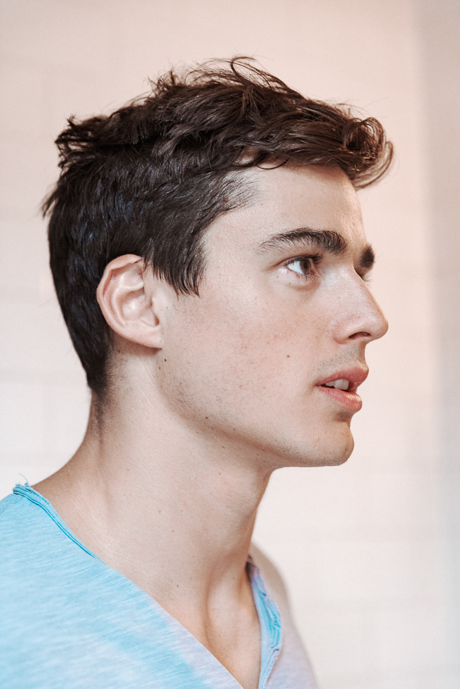 "I started modeling when I was 6 years old—it was in 1995 for an Armani Junior campaign. I was the face of the brand for four years and then took a break. [Male models] have this gap from 11 to 18 years old where they can't really work—girls don't have that, but guys do. Those years, I just focused on school. I went to university for mechanical engineering, did my degree in three years, and then everyone told me to just go and do my PhD. So I did. My thesis was on the computational design of terabytes. Basically it's how you predict the flow of fluids, in this case in terabytes and then you modify the geometry of the terabyte in order to maximize the efficiency. It’s very mathematical, so I became a lecturer in mathematics courses at the same time.