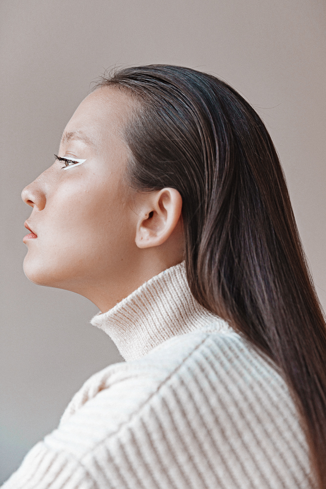 Alena Nurgaleeva (Wilhelmina) photographed by Tom Newton. Makeup by Stevie Huynh. Hair by Clara Leonard. Styling by Harrison Karabaccio.