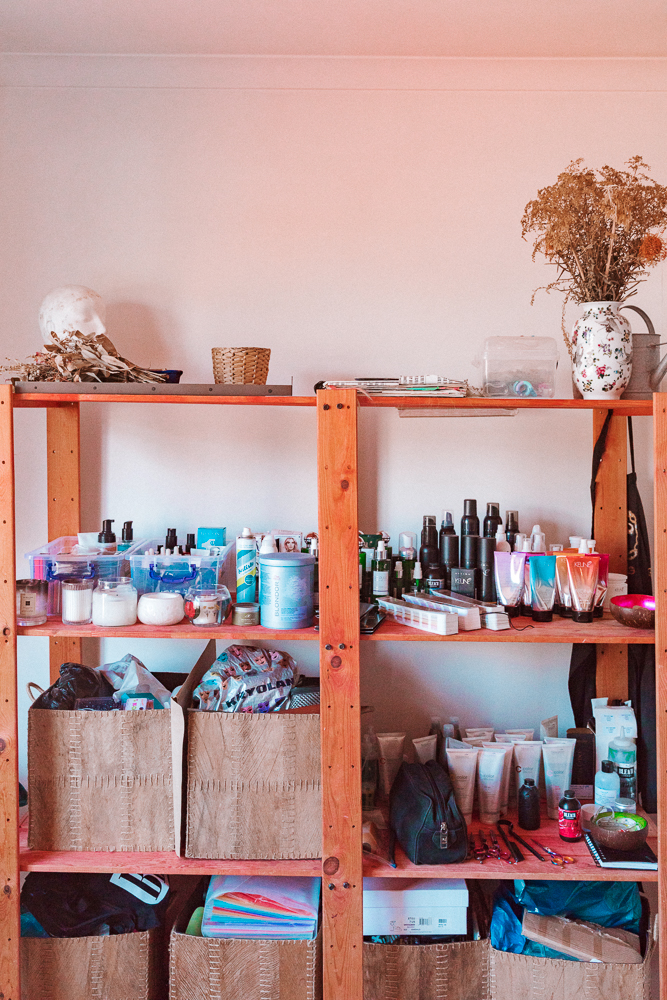 Now we have 40 chairs and a product range. [The product range] is like what you’d get when you were a teenager and be completely rebellious with–that’s what we tried to stay true to. We launched with about 15 SKUs, and now we have about 35. We’re going to have 165 when we relaunch because we’re making a lot of products. We’re also making makeup with Lou Teasdale. She’s my business partner’s sister, and she was working with One Direction for the last five years and now she has some time off. [Laughs] We’re making all the Bleach colors in eye shadows and lipsticks.