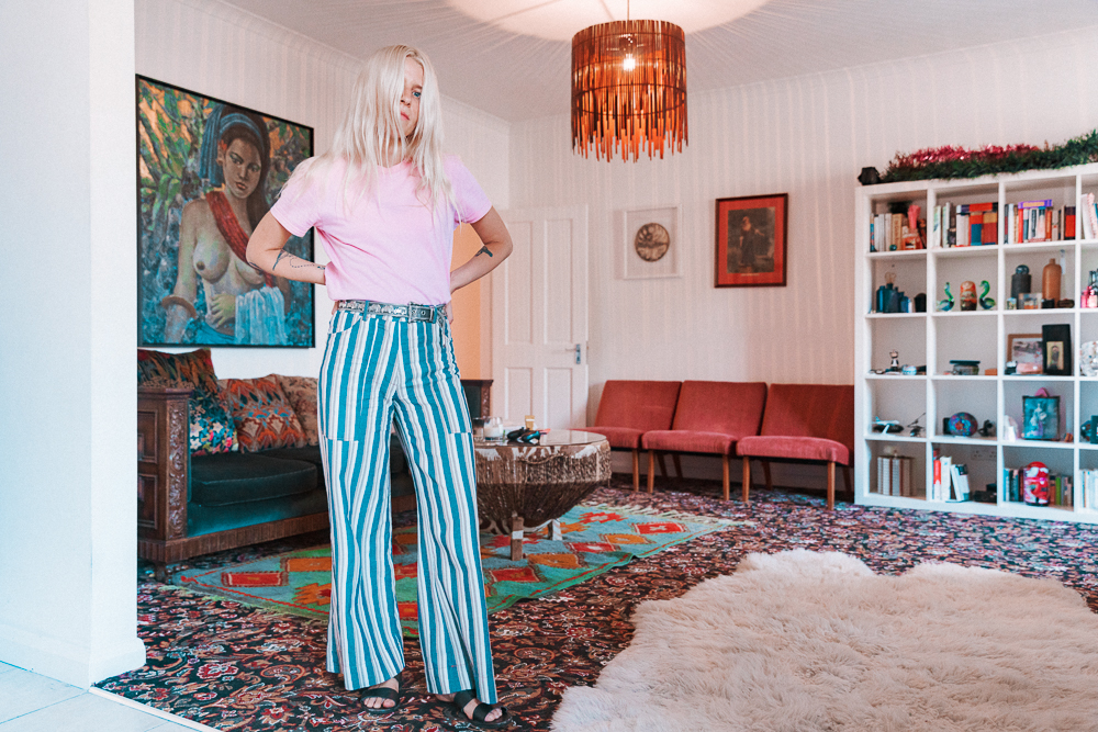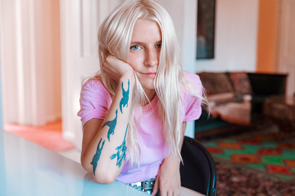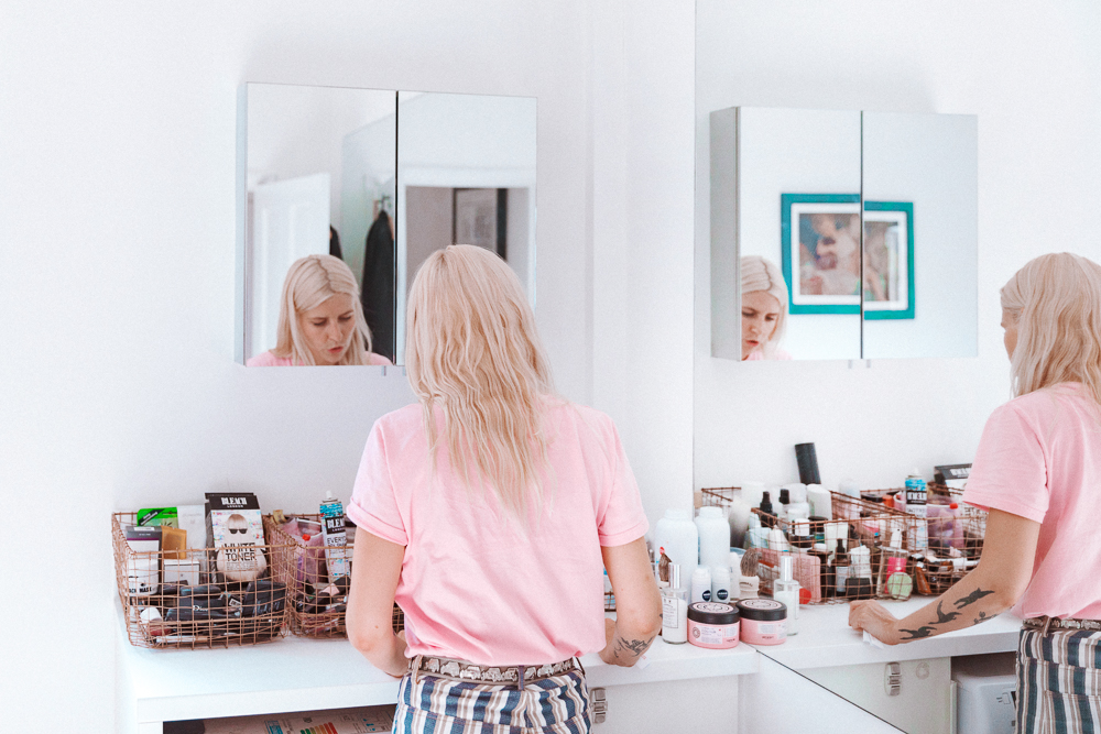 All I ever wanted was hair so white it goes gray. People would see me on the street and I’d have this white or gray hair and they’d be like, 'How do you do that to your hair?' No one could do white hair! It’s huge now, and everyone knows how to tone color, but back then, people would just point blank refuse to bleach someone’s hair to the point of being white. It would always be yellow. My natural color is mousey—in the sun it would probably go blond. I high-lift it every four to six weeks, white to the roots. This is two weeks old. The process I use doesn’t have any bleach powder in it—it’s the next level down. It’s like a buttery blonde. You don’t have to tone it and you don’t have to use silver shampoo–you can just wash and go. Apparently, Gwen Stefani does the same thing. If you keep up with it every four weeks, you basically get your hair to white blonde. The first couple of months, it’s quite ginger. Mine was a bit more champagne. I wash it every other day, which is too much, but it gets greasy.