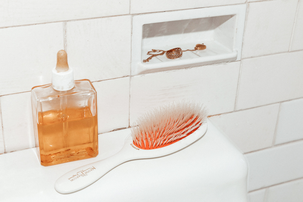 To start the night, I definitely need a shower. I can’t fully memorize my lines if I don’t do it in the shower. Because the water is sort of like surround sound, you can make mistakes and it doesn’t sound as bad as doing it in the living room. There’s no quick shower for me though. I do a lot of oil treatments for my hair, like the Rodin oil. And I actually bought an Aesop shampoo for [my dog] Frank, and then I ran out of my shampoo, so I used his, and it’s so nice. It’s really soft! Frank, I’m sorry! I don’t wash him anymore.