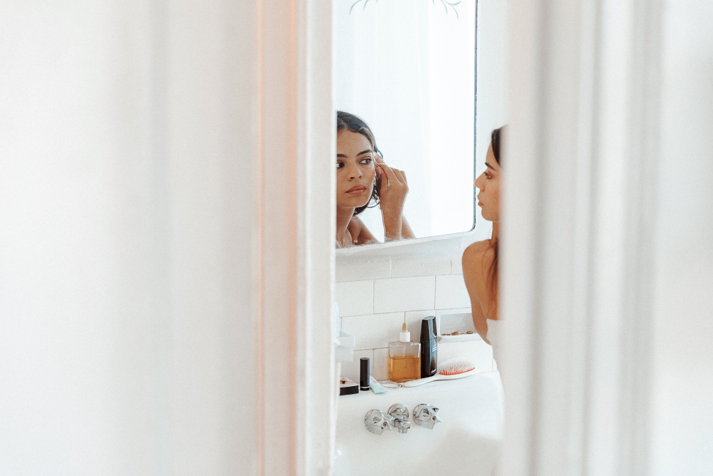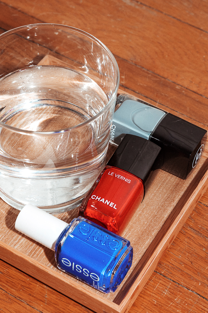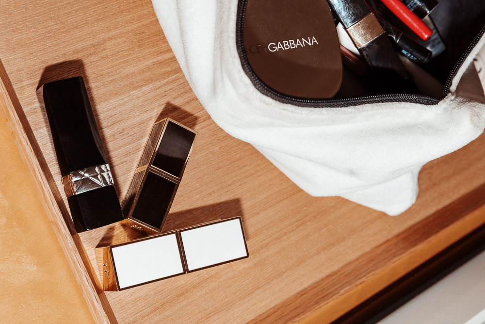 Lips are the best part! I discovered lip liner about a year ago because of Lana Del Rey. I’ve been obsessed ever since. My favorite one is by Revlon in Sienna—it’s the same one I used in my GRWM video. Basically, any lip liner that’s kind of brownish and reddish works for me. This Troy Surratt one is pretty nice because it’s waterproof. And my favorite nude lipstick is by Make Up For Ever in Rouge Crème. Sometimes I’ll do a gloss on top. I like this Chanel one, it’s very nude. Chanel actually makes a black lip gloss, but you can put it on top of any color and it just makes it darker. The Make Up For Ever is the nude I always go back to, but it’s also pretty subtle, so it’s more for everyday. If I want to do something a little crazier, I’ll do Chanel Rouge Coco Gloss in Caresse 714. For eyeshadows, I really like the cream ones by Chanel. But they always used to dry out, so I went in the other day like, ‘I’m never buying this again!’ and I guess there is a new one, and it’s so much better. It’s the Ombre Première in Undertone. I’m into reds, and I do a lot of browns. When I’m going out, I just do a matte base with Glossier Wowder and then some matte colors to create depth. Then I like to add sparkles on top.