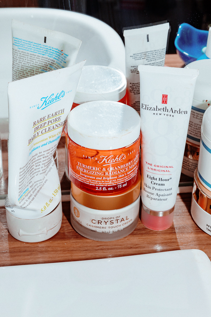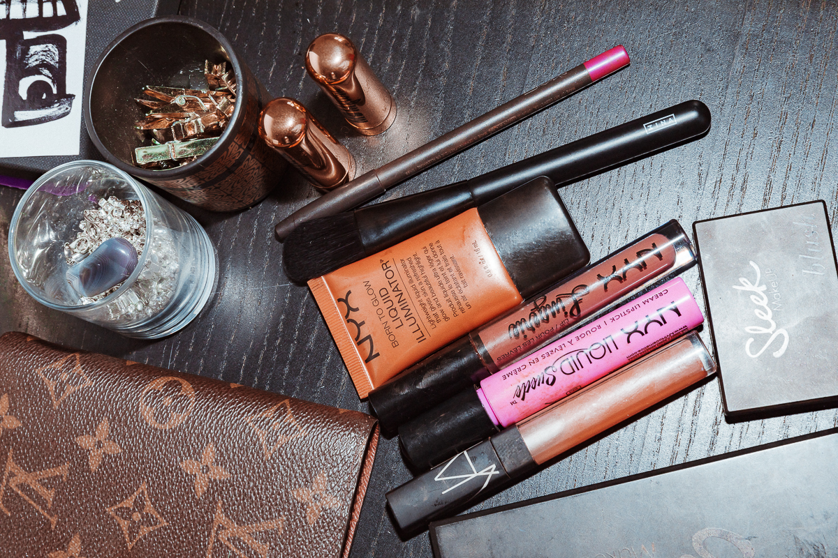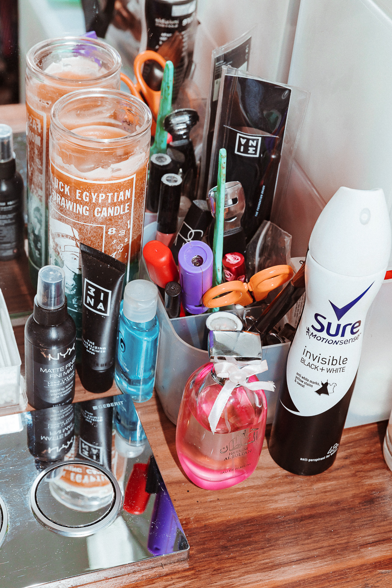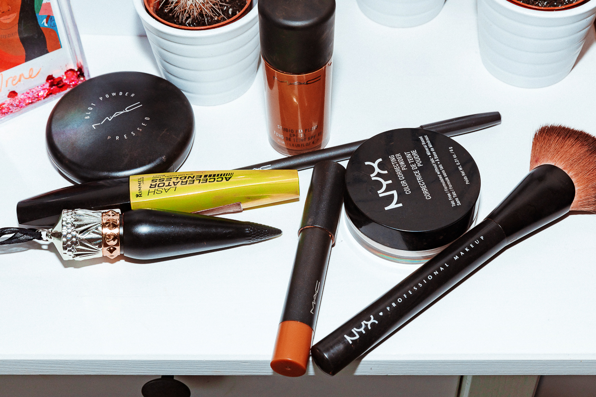 In terms of makeup, I'm a big MAC girl. Every day, I mix the MAC Studio Fix Fluid in NC50 with the Pro Wear Concealer in NW45. It’s basically the same color, but the concealer is a bit redder. My lip is either MAC Velvet Teddy with the Spice Lip Pencil, or Christian Louboutin Velvet Matte in Rouge with MAC Cherry Liner. NYX is my other brand of the moment because it's so affordable but so amazing. Especially for brown girls. So I use their Color Correcting Powder and their Studio Perfect Primer when I need to. My skin is really oily, so basically everything I use has to be oil-free. The Kiehl's Ultra Facial Oil-Free Lotion comes with me everywhere, but it's always available at Duty-Free too. And I love the Kiehl's Tumeric and Cranberry Energizing Radiance Masque—it's the best, isn't it? I steam with it and you can feel the pollution coming off your face. Then I use Garnier Micellar Water to take off my makeup–it’s the best for acne-prone skin. It's fragrance-free and doesn't give me any spots or leave me sticky.