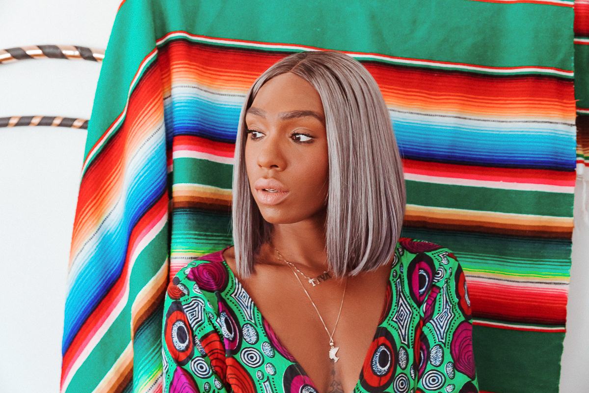 In terms of my look, I’m a big wigs girl. I love a wig. It’s convenient, too, because you can just stitch it on and prepare your looks according to it. Like I said, I live a fast life, and also I like basic clothing, so I feel like my hair makes me different. I have about 15 wigs—some are long and wavy, some are bobs. It all depends on my mood. Right now I'm wearing it short because it's hot in London and I need my neck free and my shoulders out. My friend Rio does hair, so he did this—he also does FKA Twigs. Then I usually go to Bleach and color the hair before they weave it on to me. For my natural hair, I just deep condition with Dr. Miracle's Deep Conditioning Treatment every two weeks. I don't wear it out often because I prefer it plaited. And because of the lifestyle I live, as a career woman, I like anything that's easier.