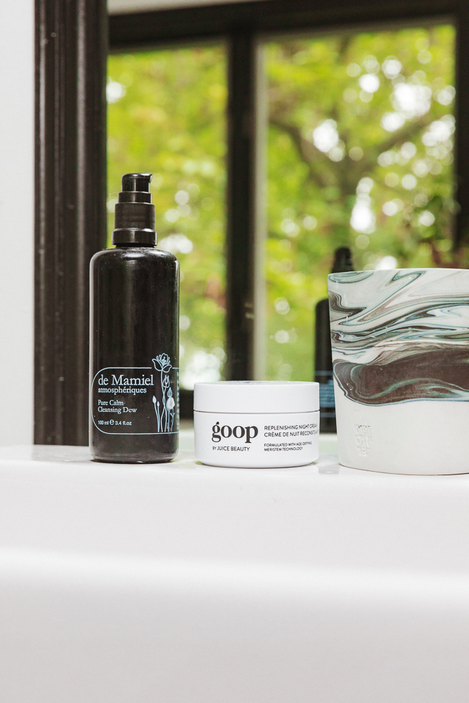 My all-time favorite mask is the Tammy Fender Restorative Radiance Masque. It’s really good because it’s clay, but it’s also moisturizing. I don’t understand how it can be, but it’s just fantastic. I do it when I’m tired and stressed out. Every two weeks, I use the Goop Instant Facial. I think it’s the only one that has all five alpha hydroxy acids and salicylic acid. That's why you don’t need to leave it on for more than two minutes. As soon as you feel a tingle, my rule is you take it off. It’s way better than natural scrubs that have an uneven surface, like ground-up walnuts. That stuff actually causes micro-tears in your skin. Alpha hydroxy acids are the best way to exfoliate without doing that.