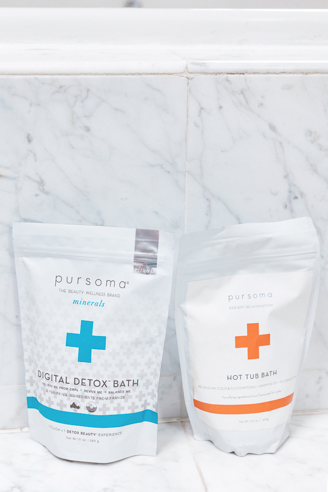 The bath thing that I freaking live for, that I think is totally different than any bath thing, is Pursoma. It’s worth trying. You definitely have to clean the bathtub afterward, though, because it's clay and mud. I tried the Digital Detox Bath—apparently it pulls everything out of you in 20 minutes and then you have to get right out so that you don't reabsorb that. When I tried it, I sat and sweat in it and then got out and laid down in bed wrapped in a towel. I didn't wake up until the next morning! Ten hours later. I don't know what it does, but there's certainly something to it. There’s also the Pursoma Hot Tub Bath, but it’s actually for if you’re sick. I really think it makes a difference. Maybe it’s psychological, I don’t know.