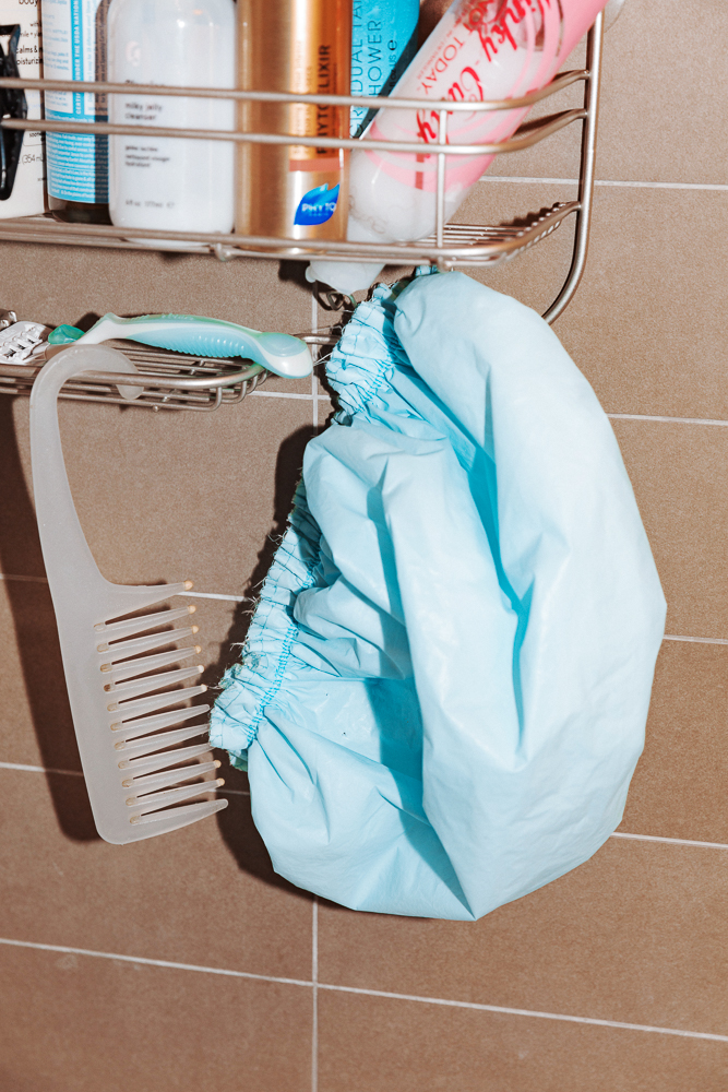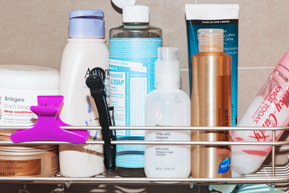 When I need beauty inspiration, I watch Girlfriends or look on Twitter. I just follow some really cool black girls who always look incredible, particularly their hair. For my makeup and skin, I’ve got my routine that I stick to. But right now, I’m in the midst of a hair transformation because I finally grew out my relaxer. So, this is me trying to figure out how to define my curls that I haven’t seen since I was 11 years old. My process starts at night when I co-wash it with either Briogeo Deep Conditioning Mask. Right after that, I use Kinky Curly Curling Custard, which I keep in the shower, too. Shout out to Priscilla, my curl goddess. She knows everything about curls, and she recommended it to me. Then I put in the Shea Moisture Coconut & Hibuscus Curl Enhancing Smoothie and braid it up into four to six braids. Always, I’ll go to sleep with a scarfie—it’s just a scarf but I call it a scarfie. I’ll wear this around boys, I don’t give a fuck. The thing is my hair is so dense, that I can wake up and it’s still wet.