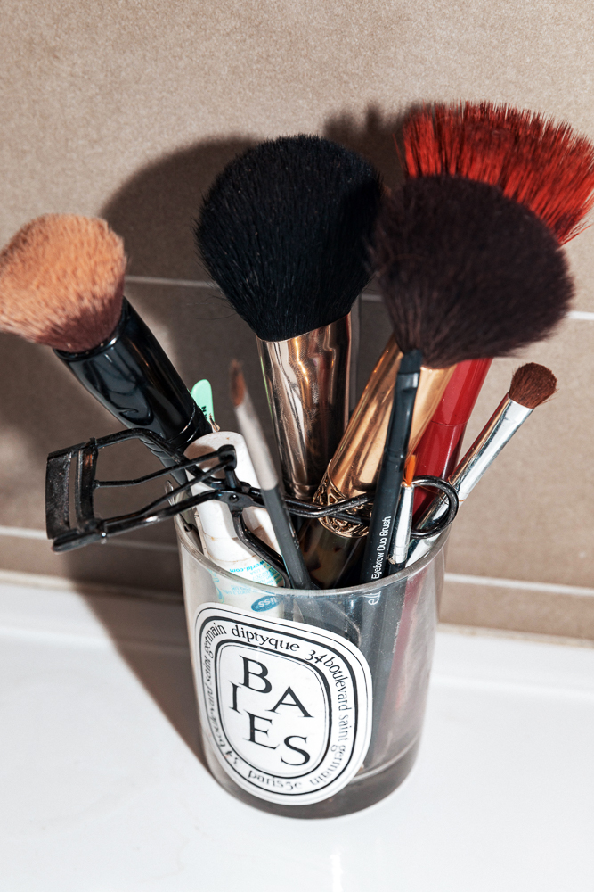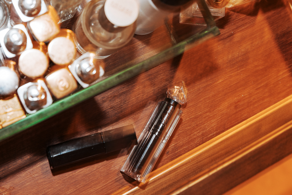 I don’t wear lip color. Well, I always wear something on my lips but people don’t know that because I never wear a lip lip. On a normal day, my goal in life is to have my lips look puffy. The best lip liner of all time is Essence Lip Liner Pencil in In The Nude. It makes your lips look fuller, and it weirdly works on all my friends of different skintones. And it’s $2. I’ll use it all over my lips or with Generation G in Cake. Then, I have two other favorites—the Guerlain La Petite Robe Noire Shiny Lipstick in Leather Blazer and the Serge Lutens Water Lip Color in Chardon. They just make your lips look a bit more warm. Lowkey killer is the Dior Lip Scrub. I have full lips, they get dry. Can’t be having that.