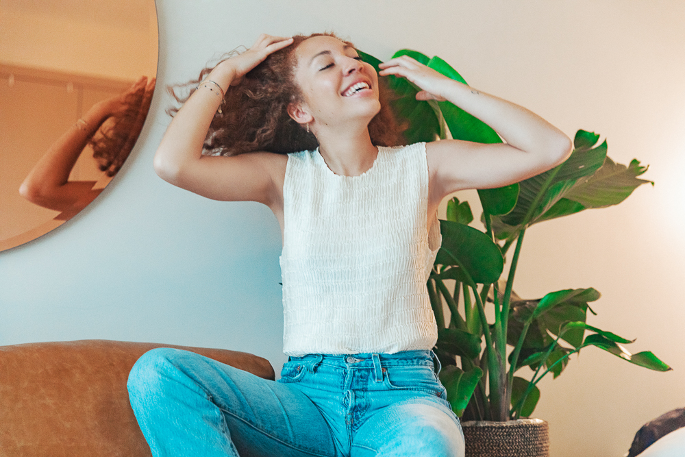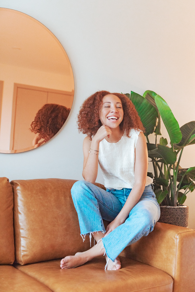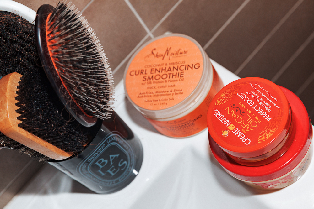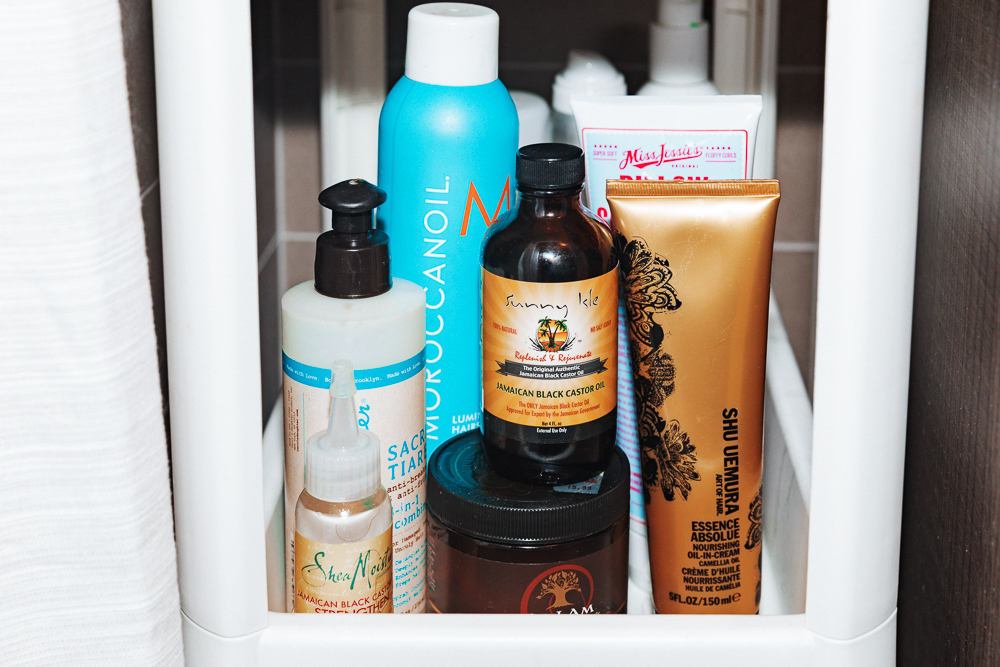 Once I take out my braids, I try not to touch it. I just let it sit. If I just keep putting my hands in it all day, or especially right out of the braids, I feel like it’ll frizz out more. Sometimes I straighten it…I just had it straight last week. I know that it’ll ruin my curl pattern if I do that too much. But you know what, I’m sorry, OK? I like it straight sometimes. So if I heat-style it, I’ll probably keep it like that for five to six days before deep conditioning it and going back to curly. Honestly, I just want my hair to look like Tracee Ellis Ross in Girlfriends circa season 2. Her hair was so incredible in it, and so that’s my life goal. I’m working on it.