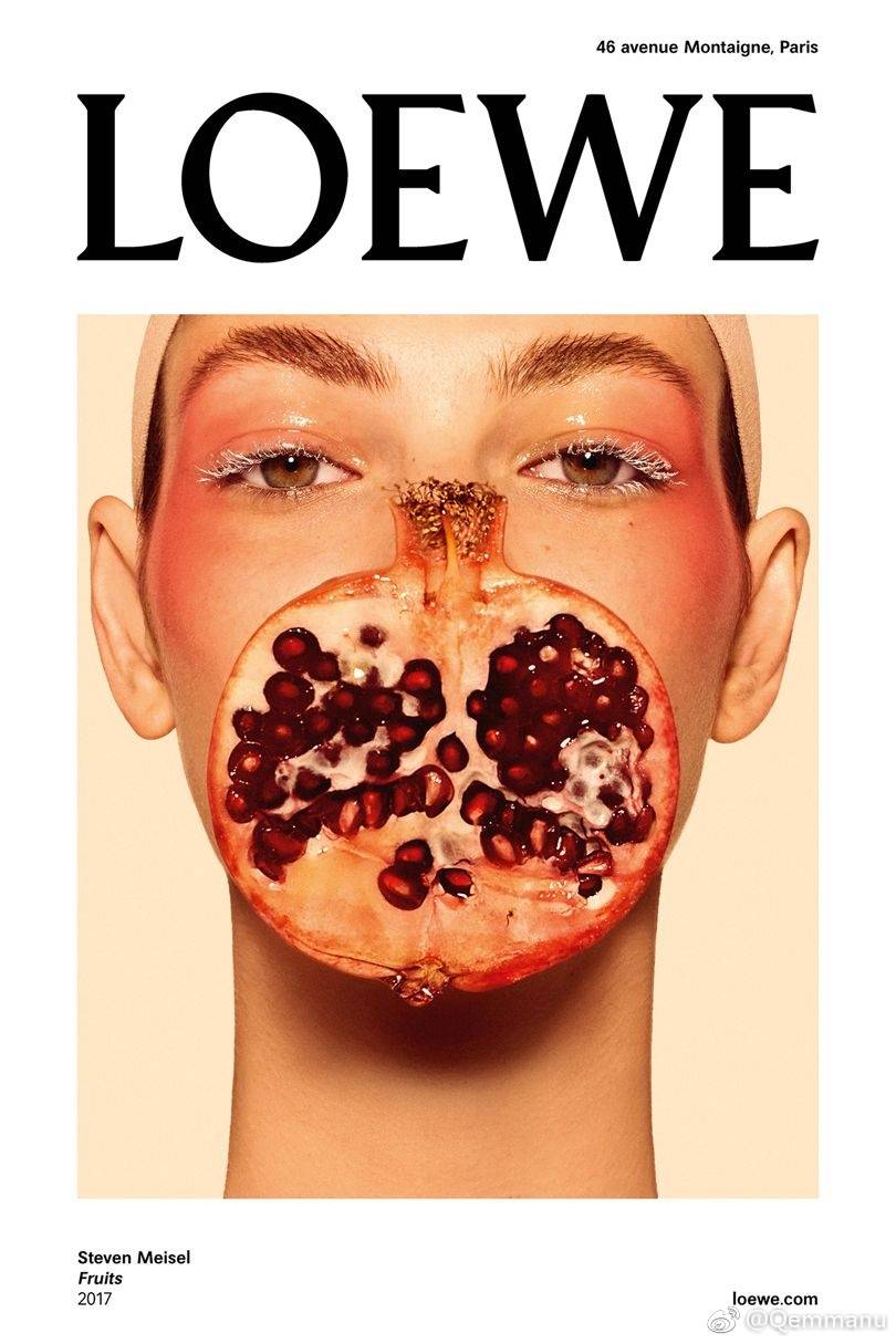 Since Irish prince J.W. Anderson ascended to Creative Director, Loewe has given photographer Steven Meisel free reign to just get weird. There was Maggie Rizer in the Rockaways early on; then Liya Kebede in front of rock formations; and most recently Helena Christensen's spray tanned, etheral nephew in a jaunty hat. Now we've got these very (ephemeral? carnal? lush? surreal?) beauty shots of Vittoria Ceretti with sliced fruits in her mouth. Not for nothing, but we do know that sexy fruit shots happen to do very well when shared on Instagram...