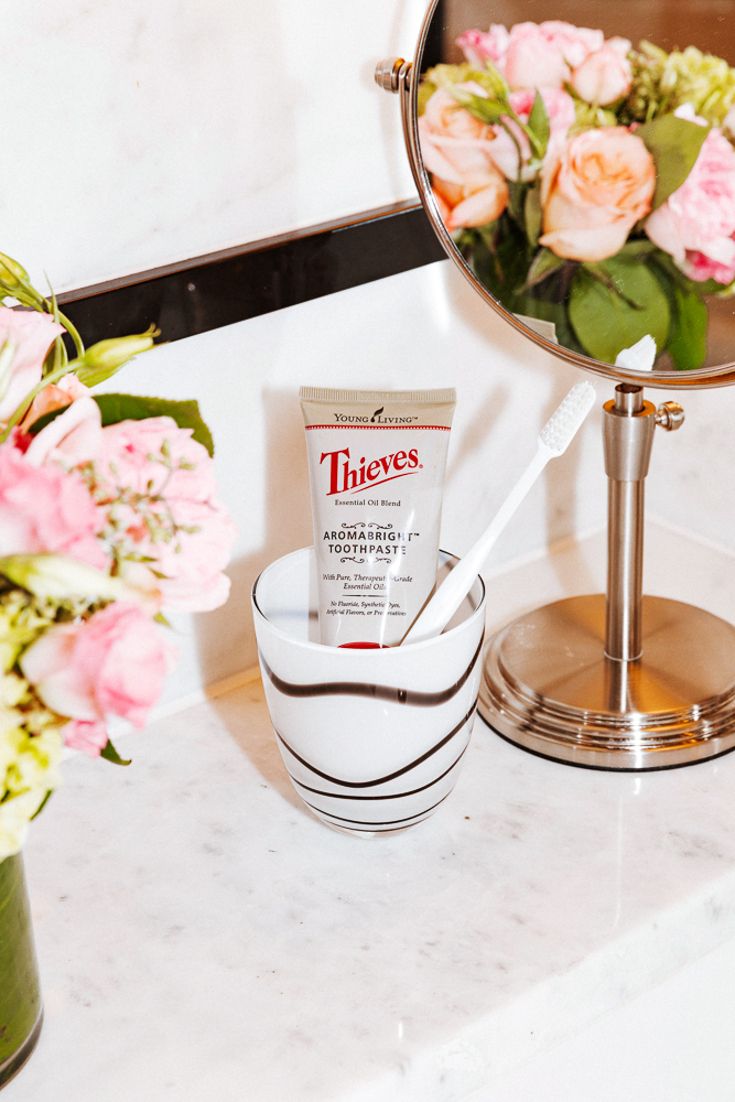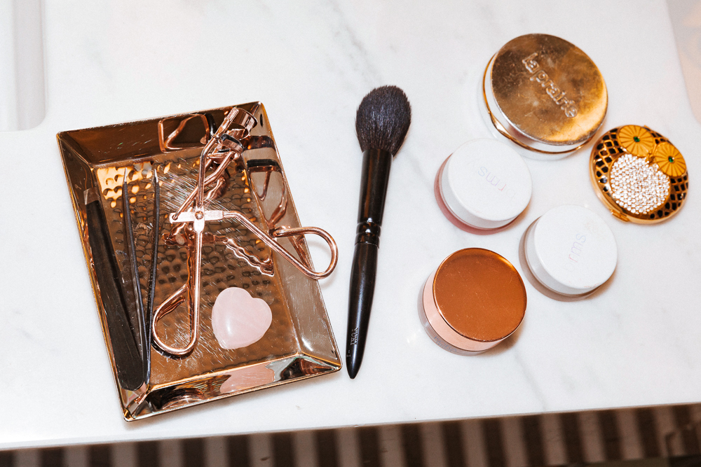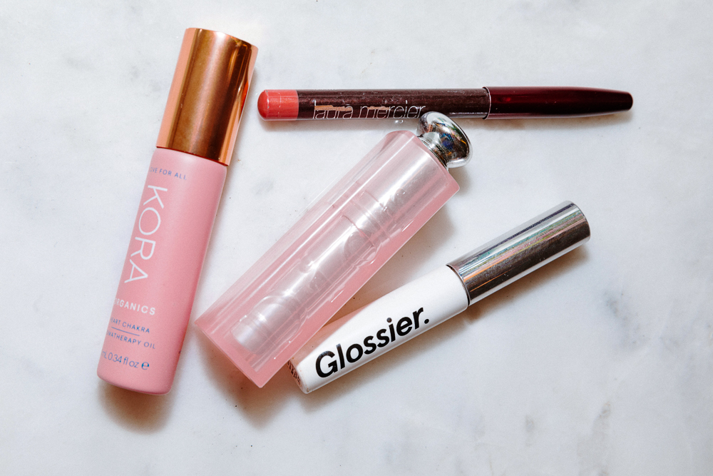 Makeup for me is for work or for date night. Usually I won't even wear mascara if I'm just at home. Sometimes I'll put on the RMS Lip2Cheek in Beloved, which is good for daytime wear. But to be a bit more glam, I like Charlotte Tilbury's line. It's not organic, but life is about balance, right? I’m all about 80% healthy and 20% indulgence. She makes a good red-orange called Tell Laura. It's matte, which photographs really well. But I actually prefer to wear a velvet finish—I think it looks better in real life. Lancôme L'Absolu Velours is a nice one that has a matte finish...but not too matte. Today, though, I'm just wearing Dior Lip Glow with a little bit of Laura Mercier's Lip Pencil in Baby Lips for a natural, glossier look.