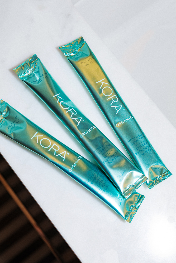 "In beauty, I know what works for me. I have a Taurus in Mercury, so the way I think is like a Taurus, but I’m an Aries with a Cancer moon...and a Leo rising. So I'm really detail-oriented and very particular about what I use and how I use it. That's actually a big part of why I created my own line. My skin needs to be great all the time—I can’t have an off-day—so I wanted organic products that could detoxify the skin but also put back all the nutrients from superfoods like noni. It’s an ingredient that's been used for thousands of years in Polynesia—they grow it in Australia as well. It’s got over a hundred vitamins and minerals in it, so when you put it on your skin and in your body, it's something you notice. It's an ingredient in our Noni Glow Oil, along with rosehip and sea buckthorn, and I love to use it as a great base for makeup. I'll mix it with the Kora Tinted Day Cream and my favorite concealer, "Un" Cover-Up from RMS.