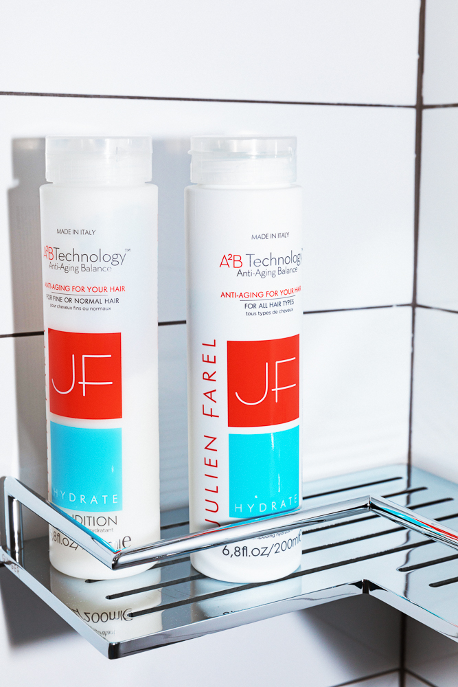 To style, I use Phyto’s Volumizing Spray. You put it on your wet hair before it’s blown, and gives me a little bit more volume without being sticky. To wash my hair, I use the Julien Farel Shampoo and Conditioner because it’s good and it’s easy. They cut my hair there [at the salon], and I get my nails done there too. I don’t wear polish, I just have them buffed. I’m in and out of gloves all day, so I just want them to be neat and clean.