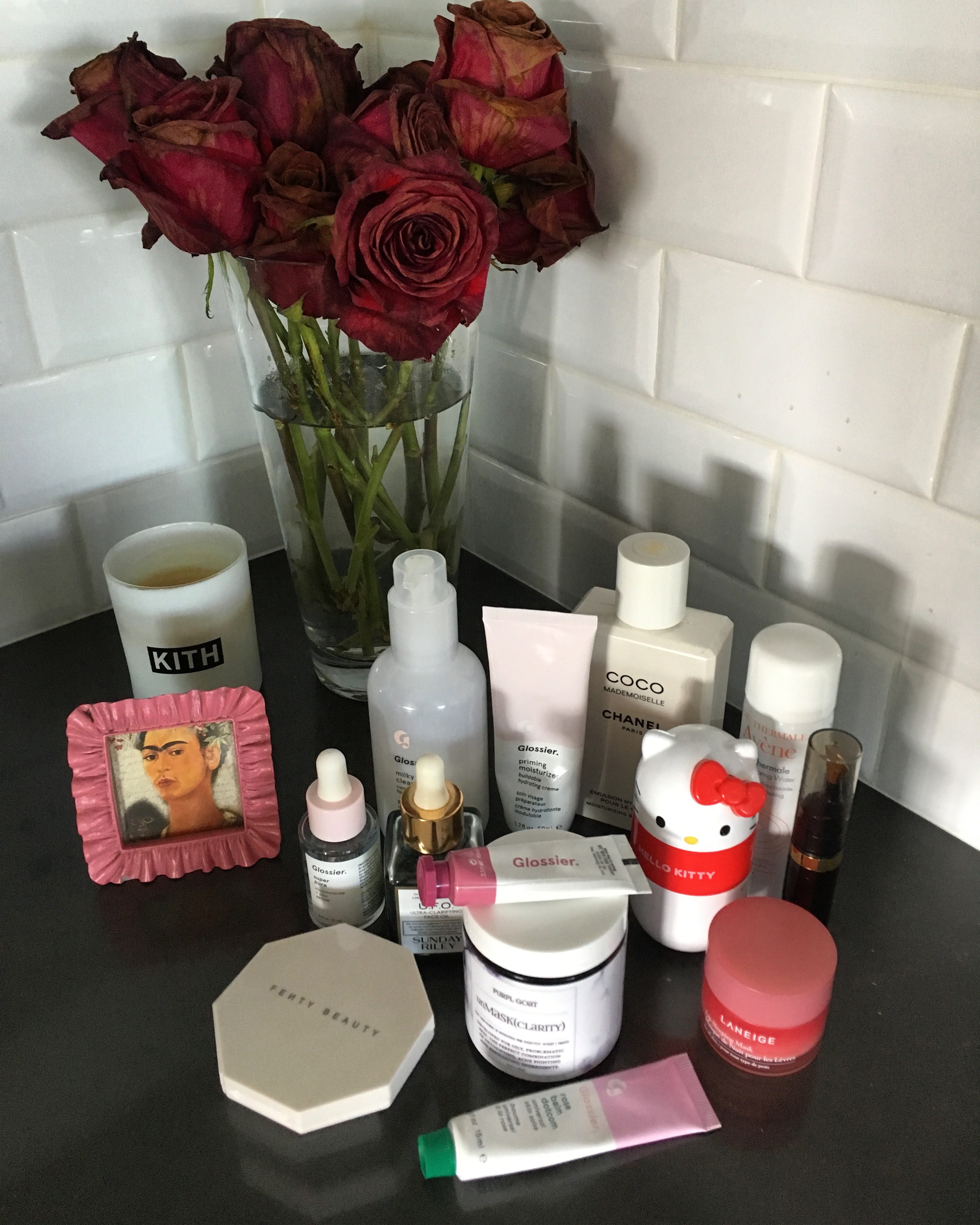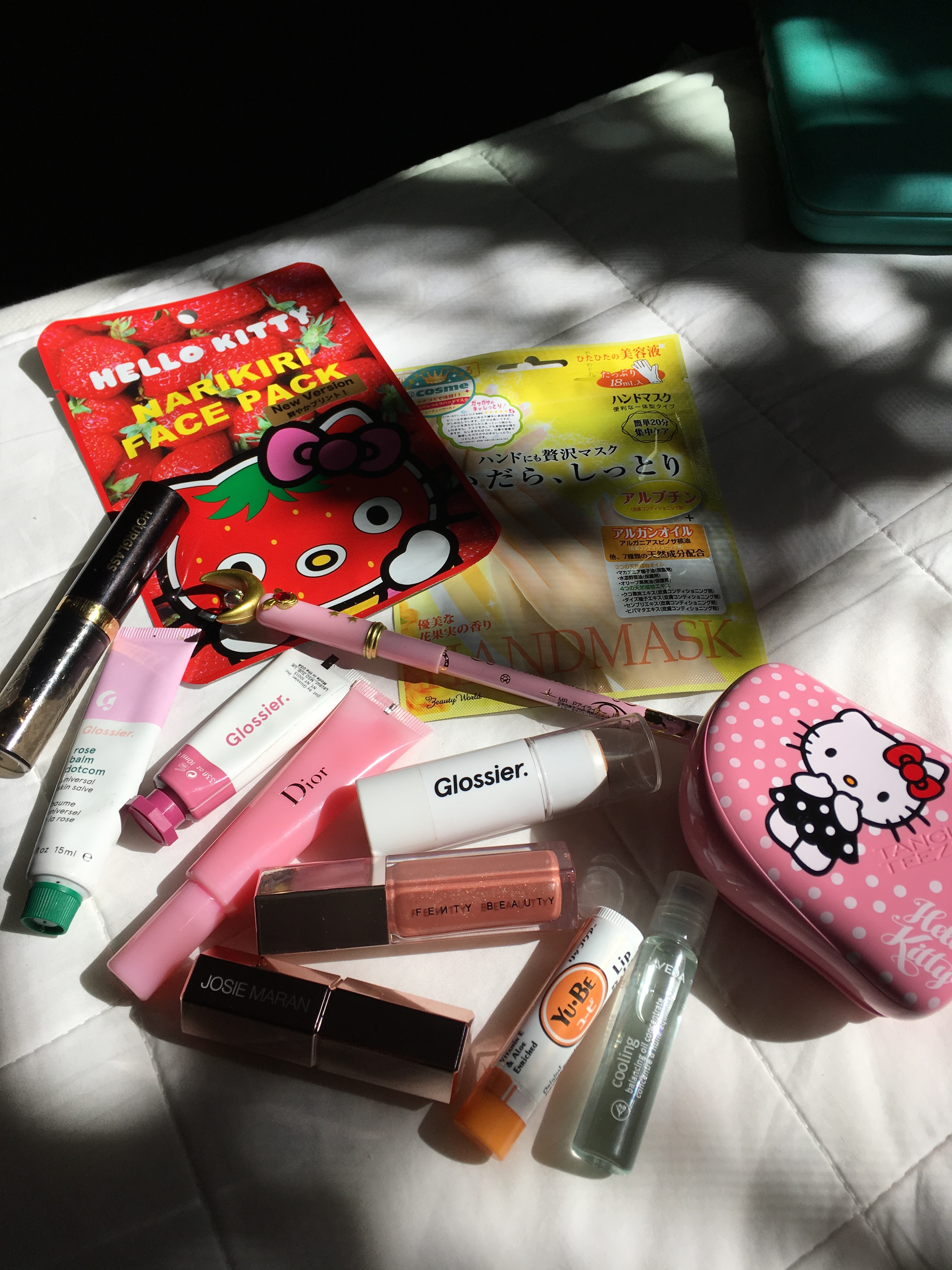 Because I have oily skin, less is definitely more for me in terms of makeup. I like to wear Juice Beauty Tinted Moisturizer SPF 30 paired with either Glossier Cloud Paint or MAC Powder Blush in Peaches. I hate wearing mascara, so I only get eyelash extensions from this place called Stacy Lash off Beverly Blvd and Fairfax. If I’m not feeling lazy and want some extra bronzy glow on my face, I’ll apply Kevyn Aucoin The Celestial Skin Liquid Lighting around my jaw, cheek bone and hairline. But, I do like to wear a little highlight and lately have been obsessed with Fenty Beauty’s Killawatt Highlighter in Trophy Wife and Ginger Binge. These highlighters are so creamy that it almost doubles as a moisturizer on my cheekbones–a little goes a long way. After, I’ll spritz my face with Avène Spring Water or La Roche Posay Eau Thermale.