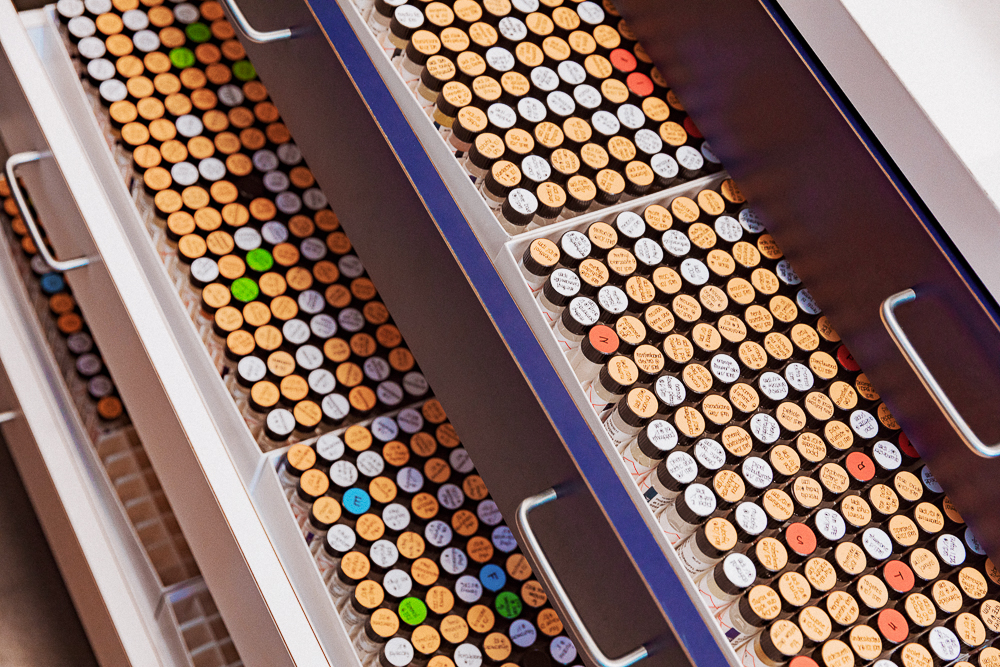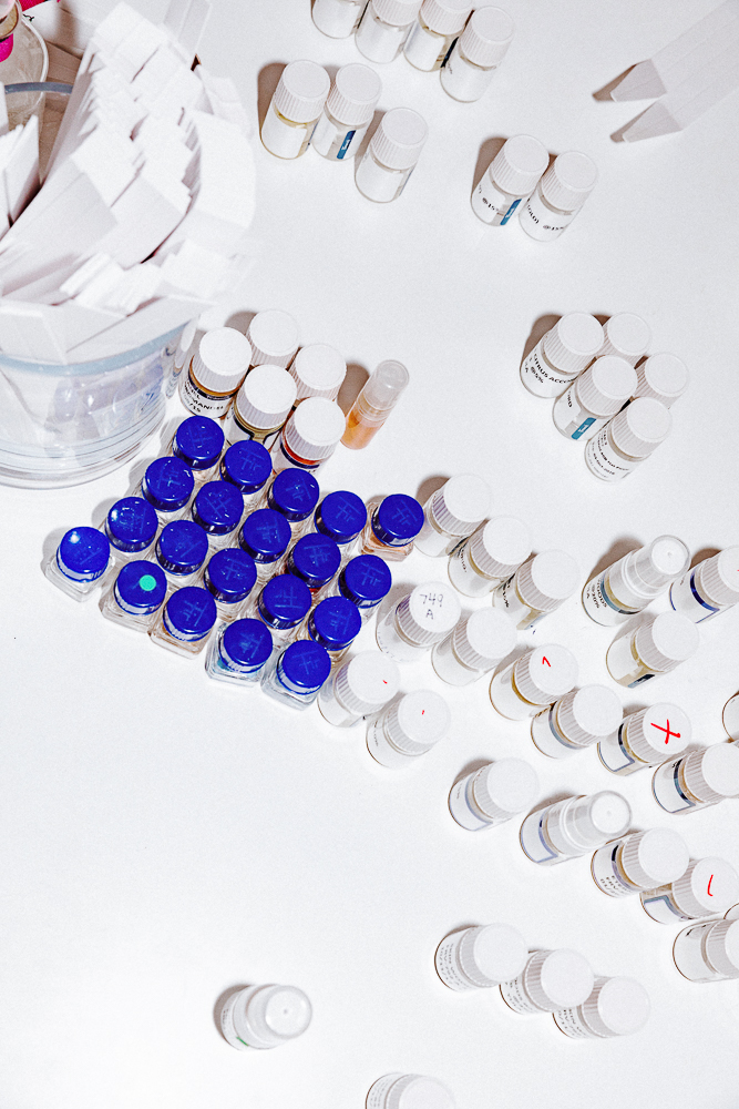 Dora: When you first start building your own accords, it’s a very big emotion because it’s the beginning of your story—when you start building your connection and your style. But it takes a lot of time. Even now, every day I come into the lab and smell 10 different raw materials. When you smell blind, you have many more ideas then when you know what you’re smelling and have ready-made ideas. Ten by 10 every day, you gradually learn the ingredients.