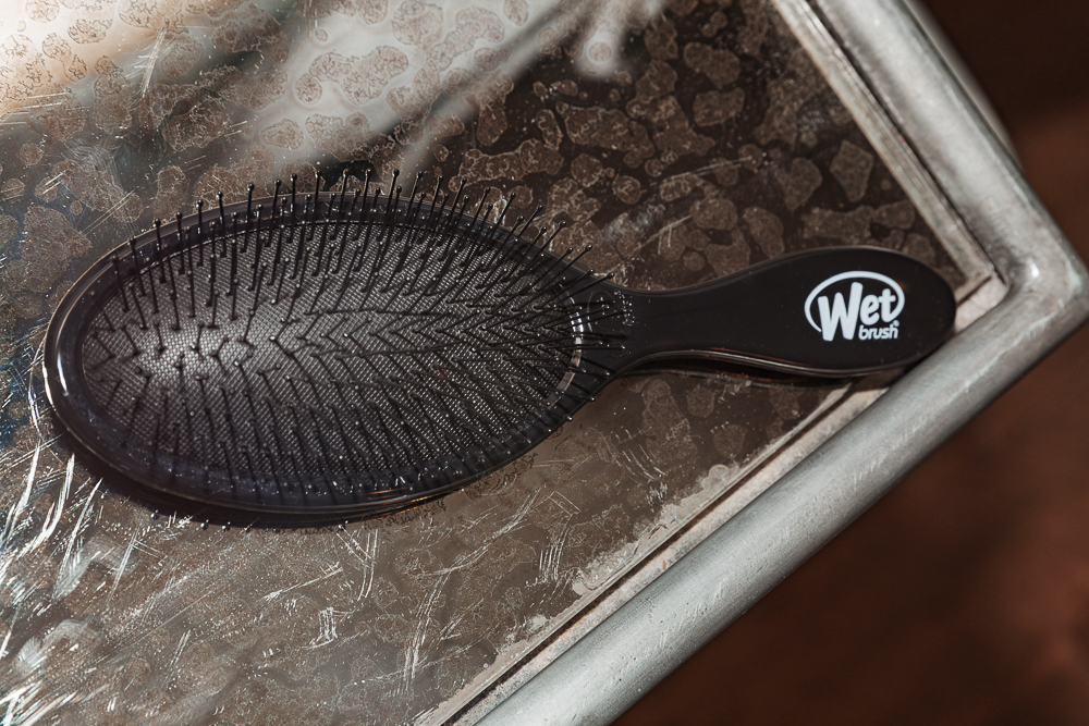 My hair has been four different colors and cuts this year because of work stuff. I went from long, breastfeeding hair to a short, platinum shaggy bob, to an inky black blunt bob, to whatever it is now—which may be best described as ‘surrendered.’ I use True Botanicals Shampoo and Conditioner, and when I'm not working I do very little to it.