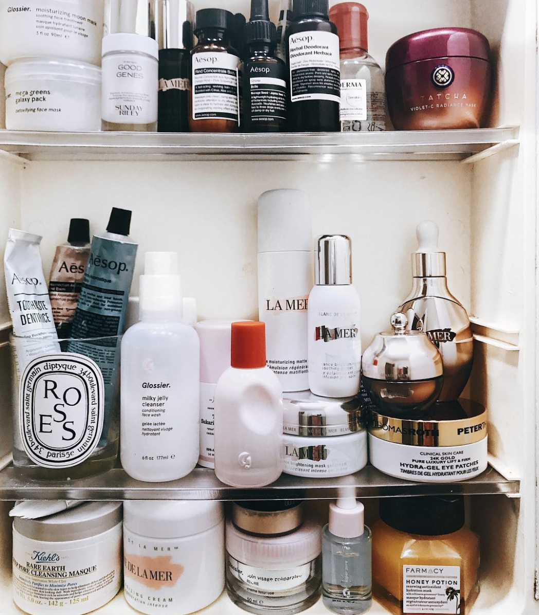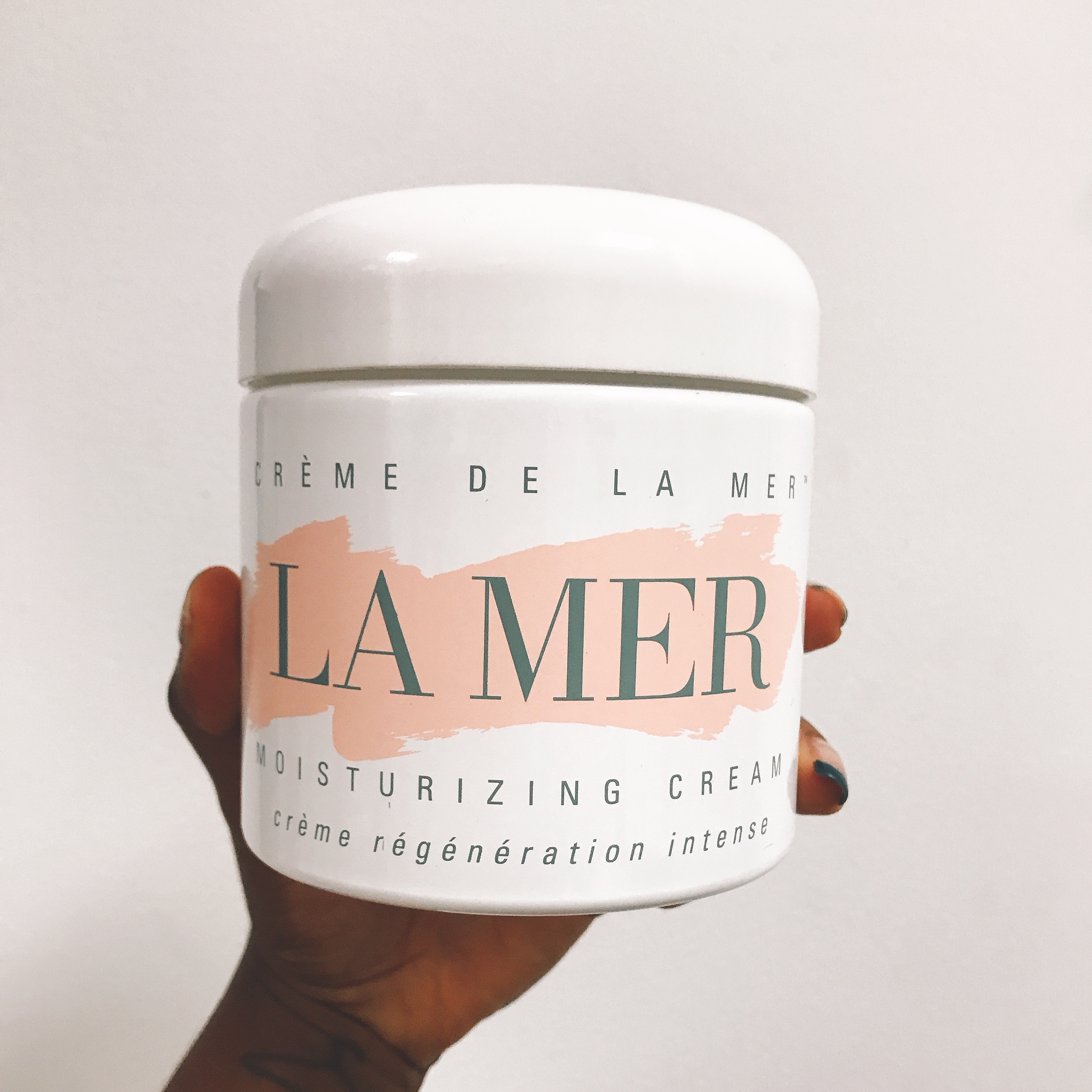When it comes to skincare, I think a brand’s products will almost always work better together, so I like to find brands I can really buy into as a whole. I like Aesop's Fabulous Face Wash in the morning. It's effective, yet doesn't make my face feel tight. If I am finishing a workout, it's Glossier Milky Jelly because it smells great, and is the only product I would trust to wash my face more than twice a day. A few days a week, I’ll do a mask. I've been rotating between a few—La Mer Brilliance Brightening Mask makes my face feel so silky, and my favorite right now is Farmacy's Honey Potion Mask… Bruh. This make your skin glow! After cleansing I use Tatcha's Essence. I didn't find essences important until I noticed my skin was dramatically clearer after adding SKII's Facial Treatment Essence into my routine. The Tatcha one gives a similar effect. After that, I use La Mer's Treatment Lotion. It's lightweight, preps my skin for makeup and just TWO drops is all I need to see effects. My skin isn't acne-prone, but it does love to surprise me with a pimple in the middle of my face every now and then. That's significantly changed since I started using Glossier Super Pure. It's decreased even those cystic, hormonal zits. Next is the eye area—I know some people don't think eye creams work, but I myself was recently converted by a new combination. First, I apply one drop of La Mer's Lifting Eye Serum on each eye with my ring finger, and let that set in. Then I grab La Mer's Eye Concentrate out my fridge—I keep a section there for sheet masks, face mists and eye creams. My husband thinks it's very strange. This is the first time I've seen any eye product make a difference in my skin. My eyes are less red and totally de-puffed. I also think how you treat your eyes in your 20s will make all the difference in how they look later on. I just want to be mindful of it now. My face moisturizer is next, and it's pretty much always Crème de la Mer. Please don't @ me! All I can say is, personally, it's changed my life. If I'm washing my face at the gym, I'll use the Matte Lotion for a different finish. And, finally, SPF. I use La Mer Broad Spectrum SPF 50.