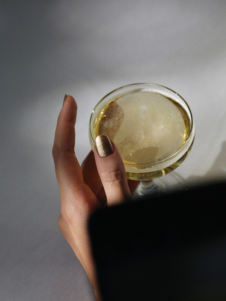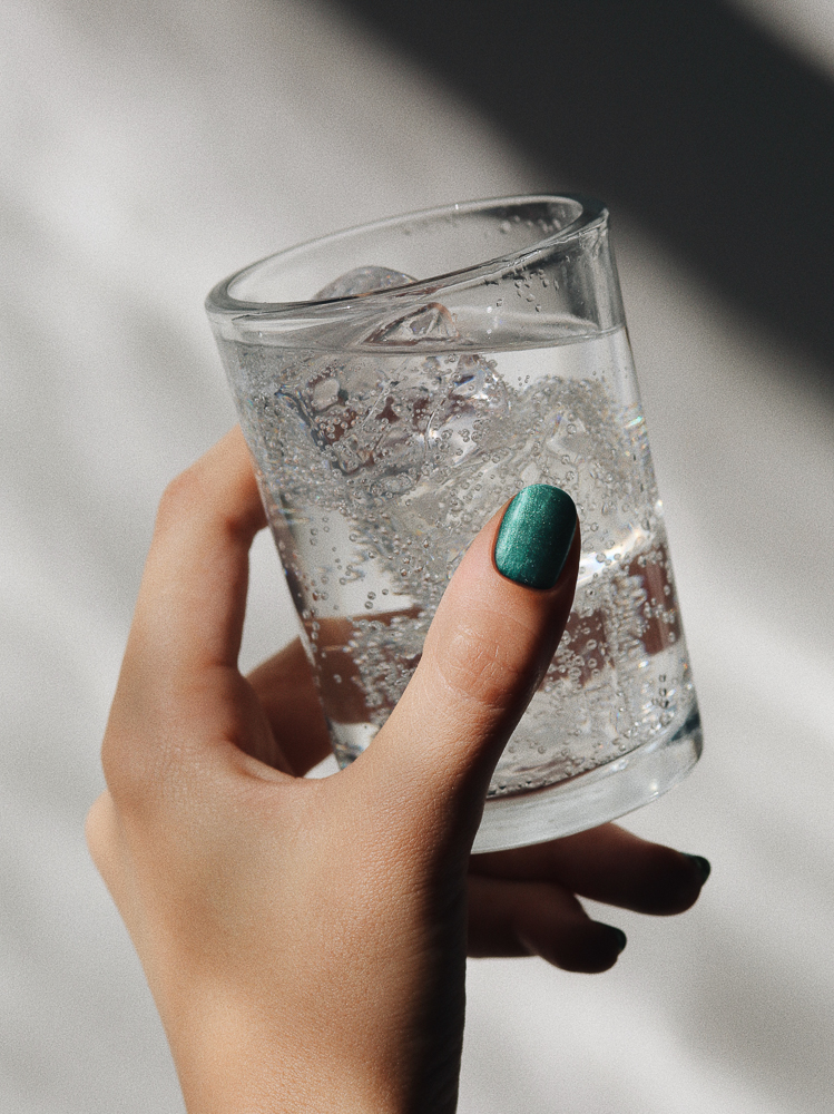 After all those drinks, I only want water. Pearlescent green is a very irregular choice of color for me. But sometimes it is important to be a little more adventurous. Wearing Dior in Emerald (it comes in the cutest little bottle) and drinking San Pellegrino with ice. Not spiked but still exciting.
