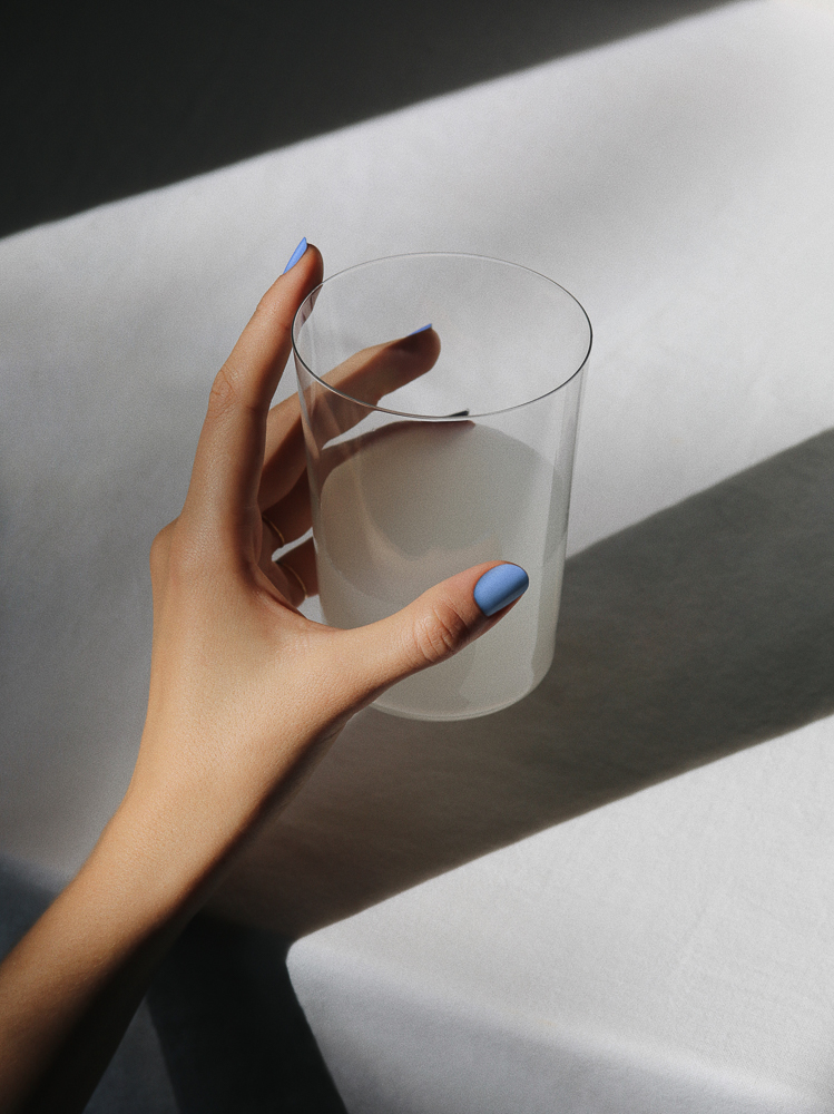 It took me a while to get into the coconut water movement. I hated the taste, but one day it just clicked. Now I wouldn't call myself a big fan, but I am a coconut water drinker. Coconuts remind me of holidays by the beach and I really like this denim-blue color on my nails—it's so important to see the sky (even if it's just on your hands when it gets dark at 4PM). This color is Irresistible by Revlon and the coconut water is by Harmless Harvest.