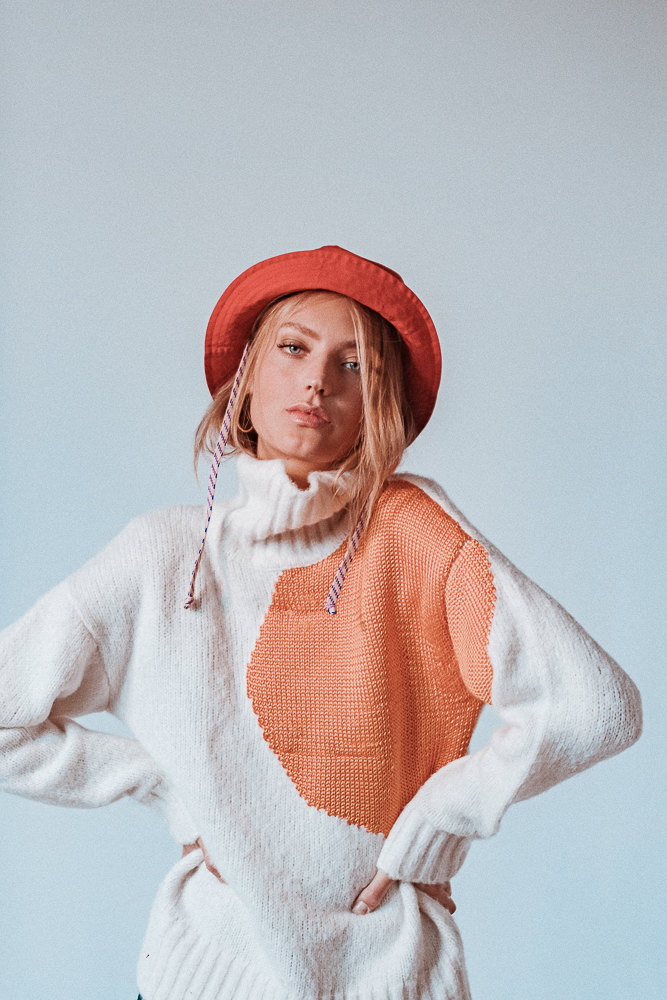 Acne Studios hat. 3.1 Phillip Lim sweater. Lyell pants. Hoops by Jennifer Fisher.