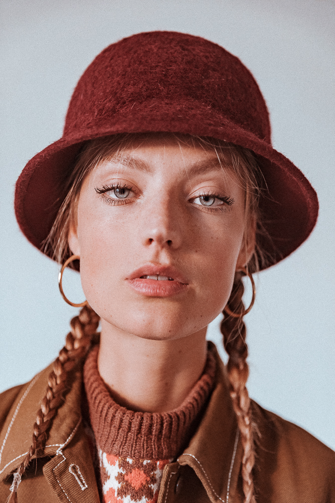 In an effort to avoid looking like a twee French cartoon, take your classic beret and make it orange, and also make it leather. The bold color does a good job bringing out warm tones in the face, plus, with a swipe of pink blush and freckles, it's an entirely new look altogether.