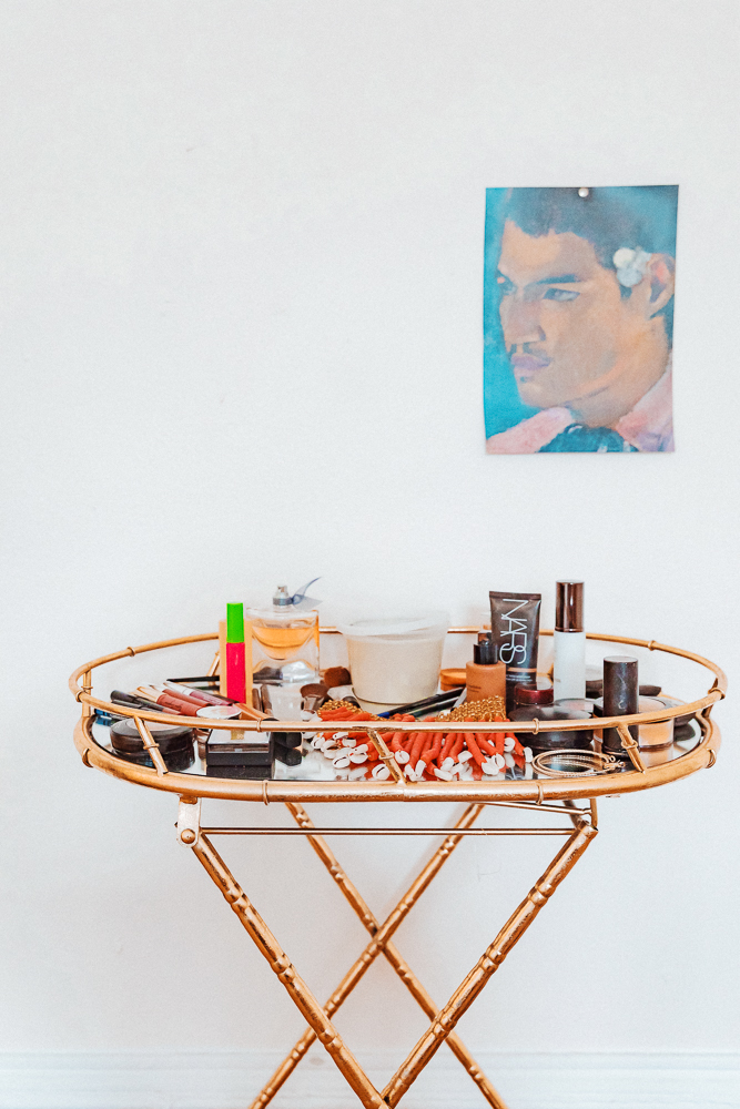 Maybelline Great Lash is my favorite mascara. I’ve tried other ones and I feel like they’re too ink-y. It goes on thin and feels more like a stain. I wear a lip most days, and I really like MAC in Velve Teen. But my real baby is Nars in Train Bleu. I also never stopped wearing lip gloss. It’s the best! I just think that shine is good, and it always seems really glamorous to me. I associate it with Brooklyn and the girls who are in a hurry to draw attention in that way. I’ll put lip gloss over something or wear it by itself. It’s always sticky as hell.