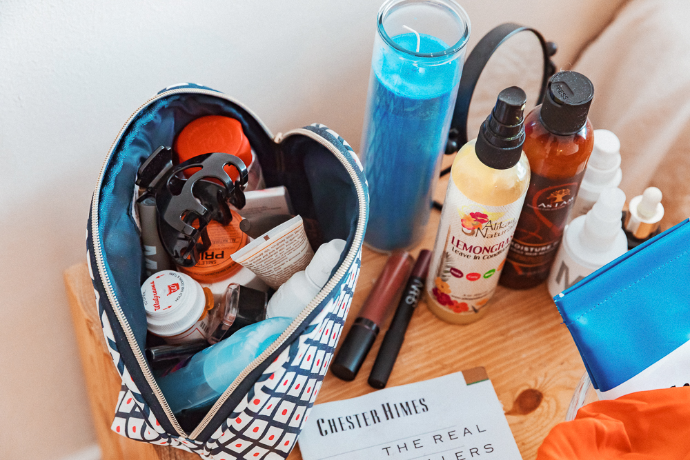 When my hair is out, and I need to braid it down at night, I’ll use the Lemongrass Leave-In Conditioner from Alikay Naturals. She was one of these people that I followed on YouTube, and now she has her own brand in Target. If I don’t use that, I use the moisture milk from As I Am. And of course, my bonnet—it keeps my hair from breaking.