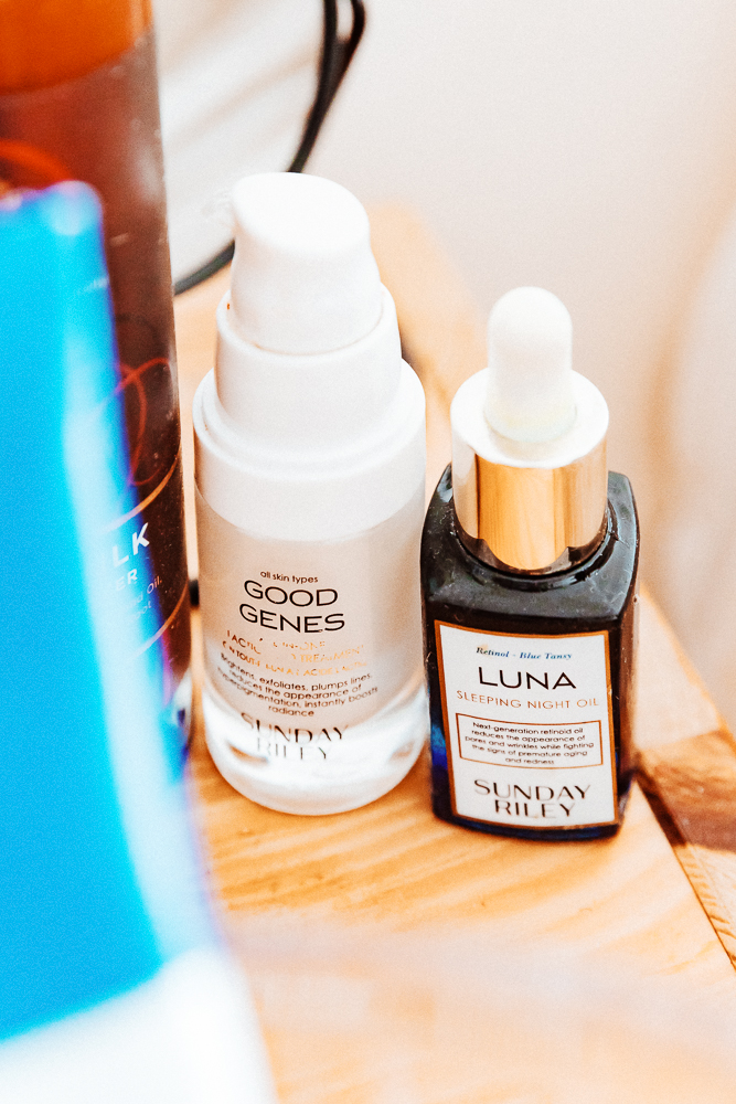 At night, I’ll use Good Genes or this Skin Perfecting AHA. Good Genes is for when I’m really feeling special. I keep it by my bed for that luxe experience. [Laughs] Sometimes I use L’Occitane Ultra-Rich. It has a lot of shea butter in it. I love old school stuff, like Ponds. Ponds is the fucking shit. Ponds, Nivea, Noxema, I love all those post-World War II kind of indestructible beauty product things. As much as I love the natural, I live in a city with tons of pollutants and I can’t expect the oils to do the whole job. If I don’t use that cream, then I use Sunday Riley’s Luna Oil. Once in a while I use this Dior Hydra Life Deep Hydration Sorbet Water Essence. I just like feeling like I have more money than I do.