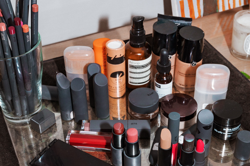 I love makeup, but I don’t like to wear a lot of makeup. Lipstick, mascara, healthy skin—I think you can basically get out of bed and roll with that. Hair back, smell good–it’s classic. I’ve never had layers and layers of makeup. I rarely use things with synthetics, but the Nars and Armani foundations are examples where I will. Because I still want it to work. So if I know I’m being photographed, I’ll use the Giorgio Armani Luminous Silk, with the Nars primer underneath. The Armani is a little on the matte side, and I find that it’s really blendable. It’s not overly heavy, so with a brush I can layer that. I’ve been using the Sephora brushes, I think they’re amazing. I definitely use the Bite Mulitstick on eyes, lips, and cheeks, I think they’re amazing. I use Papaya and Cashew a lot. I have the whole set, but Cashew is probably the shade that I use the most. Biscotti is what I will use for a contour, but I will use it everywhere, too. About 80% of my makeup is the Multistick.
