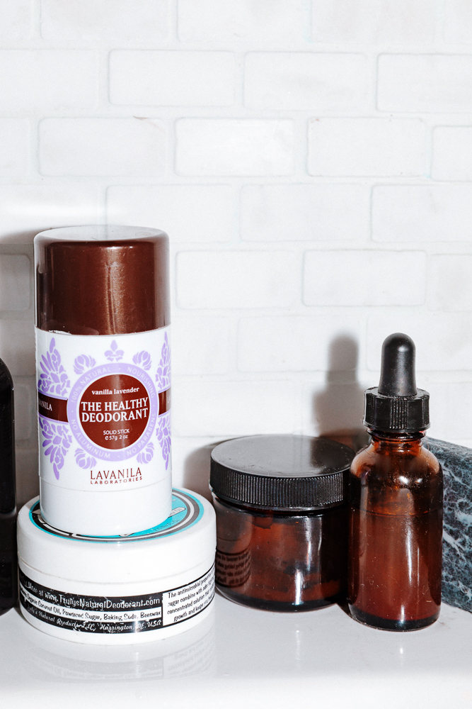 SPF is really challenging. I have the Badger–which is basically for a baby at the beach. So sometimes if I have enough time, I’ll put it on and go and do other things while I wait for it to soak in. If I use an unnatural sunscreen, there are a couple that I do like. I think I use the Neutrogena Ultra Sheer–I can put it on and it’s absorbed really quickly.