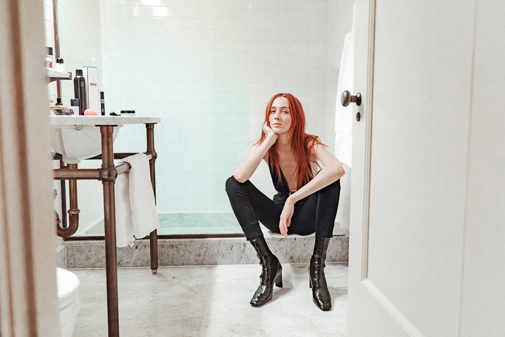 I remember the night before my first Louis Vuitton show, Nicolas coming up to me and saying, ‘We want to change your hair. We either want to go jet black or Karen Elson red. You can decide which one you want.’ I had mousy brown hair—clock the roots, girl. I was under the impression that the red hair would be a cute moment for the show and I would return to the brown hair, but it’s been two and half years since then and I’ve kept the hair. I feel like I was always ginger on the inside and I didn’t know—it suits me so well. Where’s my Prada campaign, though?
