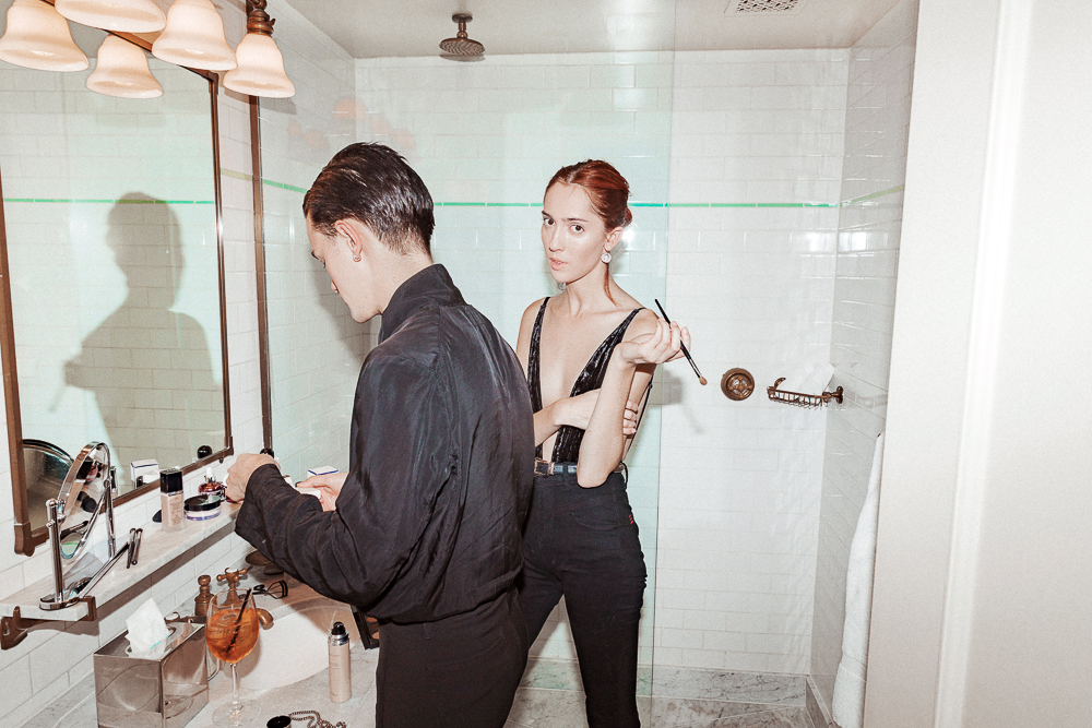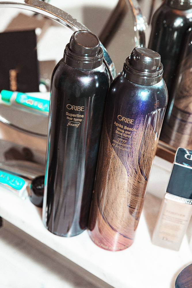 For hair, I’ll use the Oribe Hair Spray, and maybe a Beach Spray if I decide to add a little bit of texture and greasiness to it. For me, the makeup will inform the hair, and so will the dress. I like a very chill hairstyle—sometimes I’ll do the hairstyle where I’ll pull it all to one side and slick it back.