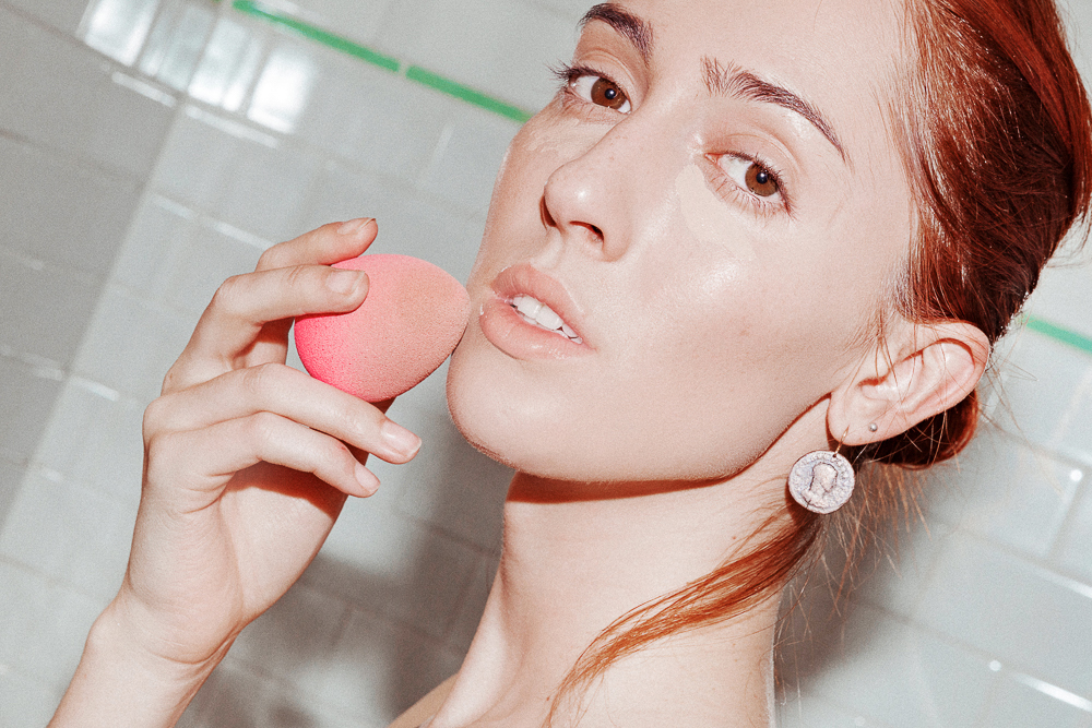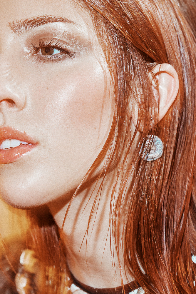 I might use this MAC product called Dusk—it’s a brown, cream-colored base. I’ll put that on top of everything to make it all a little dewier and wetter. I’ll do a kind of rosy skin to go with that, because I want to look very Da Vinci-esque. Like a very moody, sensual, sophisticated painting. The only blush that I ever use is a cream one from Honest Beauty. It’s a pink-y, coral-y color that blends so nicely. It’s never patchy. I’ll apply the blush last, and I’ll put it on the outer apples of my cheek, my forehead, and down the center of my neck to tie it all together. And then I’ll highlight on my cupid’s bow, inner corners, and brow bone.
