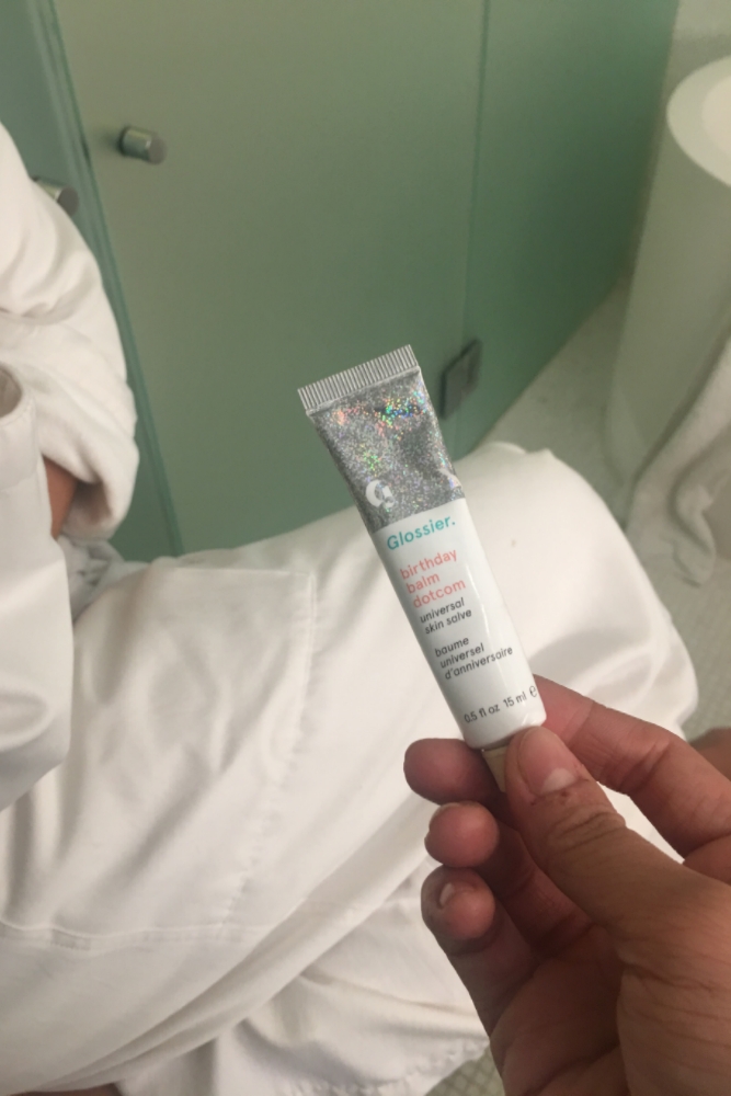 "Adwoa has the most beautiful skin that’s decorated with freckles, so you don’t particularly want to cover it up too much. Tonight, she sat in GlamGlow's SuperMud Clearing Treatment Mask before I cleansed her face using Bioderma's gentle micellar water. That usually calms any redness. Then we used Dr. Hauschka's Rose Day Cream—it's a lovely rich, yummy moisturizer, perfect for under makeup. This process is almost as important as concealer or foundation, because it makes it so much easier to me to use less makeup overall.