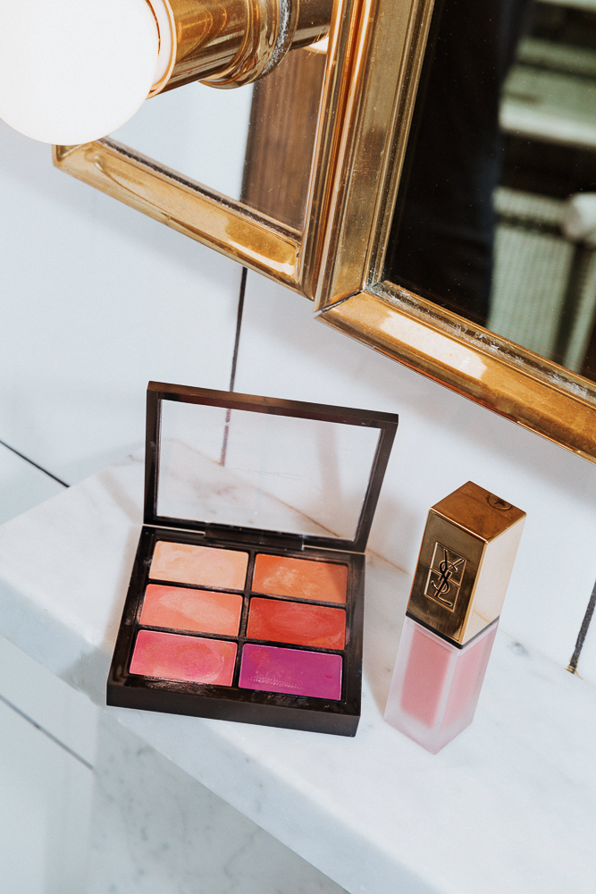 I do my hair and makeup myself when I go onstage. It’s part of my routine and I would say it takes about 30 minutes. After modeling for so many years, I learned a lot—I just don’t wear quite that much makeup every day. I do use a lot of professional products because I’m lucky enough to have a makeup artist so I can copy her. [Laughs] The new YSL Tatouage Matte Lip Stain is fantastic, I’m wearing that today. I like very natural cheek blush and I like a very light fresh gloss instead of heavy lipstick. When I don’t have such a great makeup artist around, I go very, very soft on my skin. When you’re 15 years old, you can cover yourself with makeup, but when you’re past 30, you can be lighter with your hand. It’s better to concentrate on having good skin. For instance, instead of using foundation, I would use a BB or CC cream. I like Erborian’s CC Cream—delicious smell. You spread it all over, it unifies your complexion, but doesn't cover you up. Maybe on the nose, I would use a little blot powder to avoid a sweaty look in my T-zone, and a very good moisturizer underneath.
