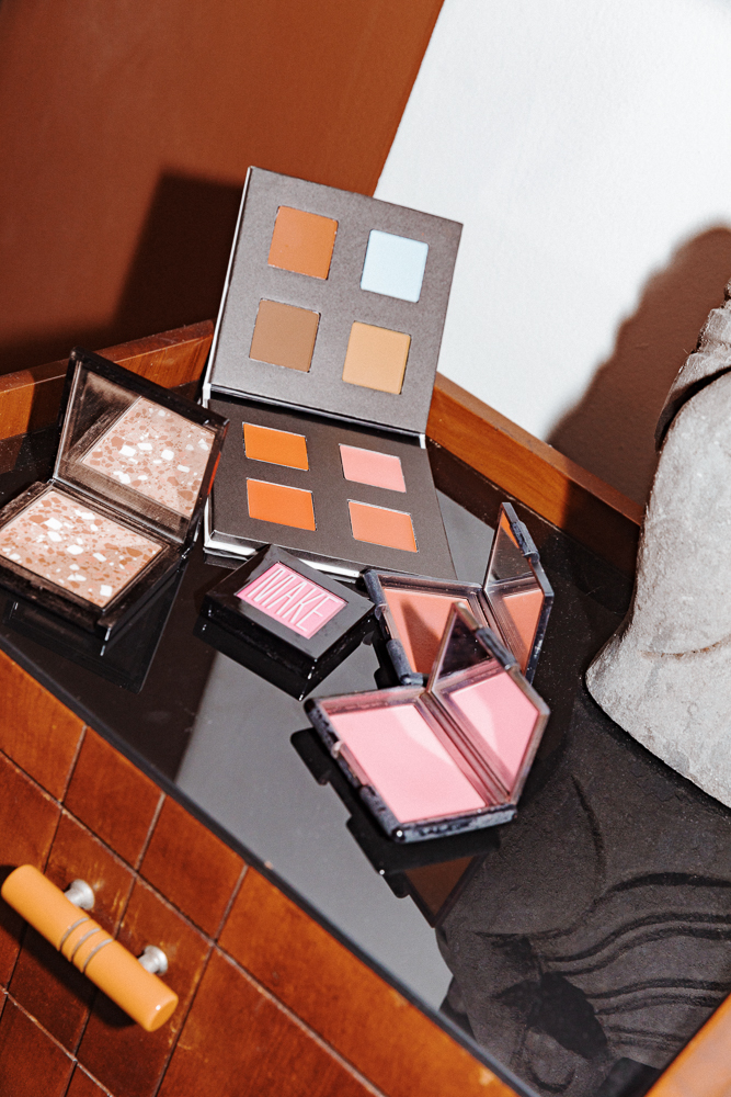 Fran: You’re pretty low-maintenance. [Laughs] I’m pretty simple, too. For me, going wild is a brighter pop of color on my eyes or my lips. It’s not really crazy at all—Nars Heat Wave is my colorful one. Sometimes I’ll throw Cloud Paint in Dusk on my eyes. I find it lasts longer that way. Or a dusting of the Nars Mata Hari. Or in the summertime, I like Exhibit A. On Jackie, I’d probably do a highlight and a bronzer…