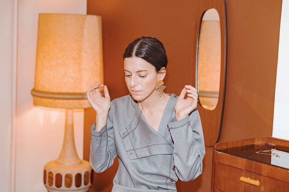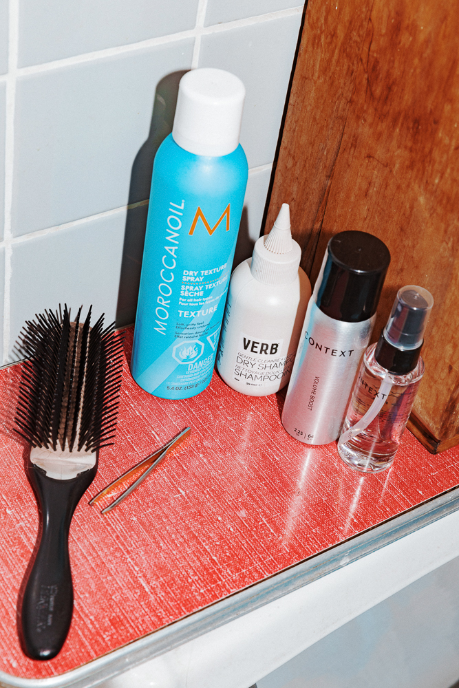 Fran: She has flawless skin, so it doesn’t take much. Like, I don’t know how to contour. I understand the theory of it, but when I try to apply it, I’m always very confused. It doesn’t seem like I’m ever doing anything right. I do have a really easy go-to solution for my hair, since it tends to get greasy quickly. It’s this low bun. It photographs well, for one. I don’t really blow-dry my hair and use minimal hair products. I do my Hair Oil when I get out of the shower and then some texturizing spay once it dries.