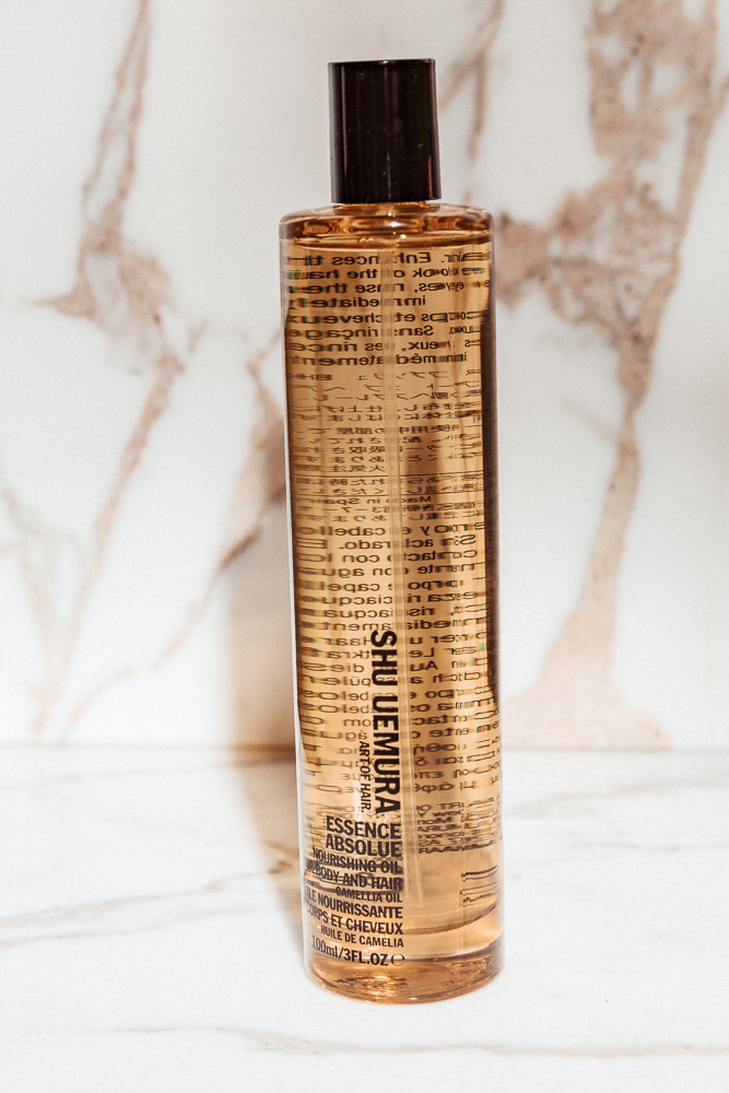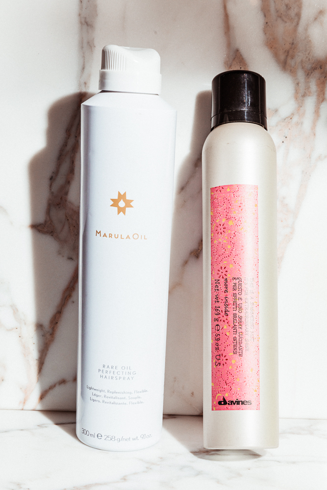 Depends on what you're going for. For that slicked-back Hadid look (and a nifty, DIY face lift), hydrate ends with Shu Uemura's Essence Absolue and wind around into a bun. The slick your flyaways with what is perhaps the most perfect hairspray since L'Oréal's Elnett: Marulaoil Rare Oil Perfecting Hairspray. It's the least sticky, shiniest, most nourishing hold product that's made its way into the ITG closet. Truly something to behold. Heh. Of course, if bed head is your game, grab a bottle of Davines' This Is A Shimmering Mist. It's a shimmering mist! Glitter for your hair! Because your cheekbones, eyelids, and outfit shouldn't have all the fun.