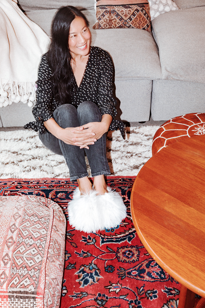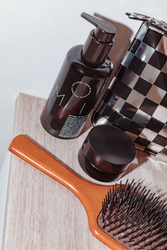 I like to joke that I get ready quicker than my husband. I literally just jump in the shower, wash my hair with the Aesop Shampoo and Conditioner, and then put in product to help with texture. I love Reverie's Milk Treatment, which comes in a pump and is really lightweight. It helps smooth and defrizz and that’s all I kind of want. Sometimes on days where it's rainy and extra frizzy, I’ll use the Rake Stylng Balm on the ends of my hair. It’s heavyweight and smells amazing, but it's not sticky, I can’t stand anything that’s sticky or waxy. Elizabeth, who owns WhiteRoom has cut my hair for years since she was at Woodley and Bunny. She always does the same thing and cuts little layers. My hair has changed over time-it used to be stick straight but it’s become more textured. I’m very lucky because it works with my lifestyle too.