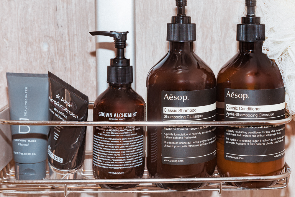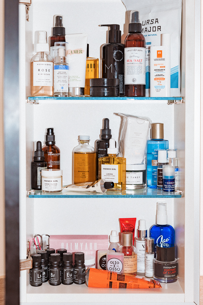 At the end of the day, I feel like I’ve been the same person over the course of my adult life. That means feeling comfortable, and obviously feeling like my best self. And of course that starts with skincare. I have to say I am kind of lazy when it comes to this, so I keep it very simple and low maintenance. Because I have so much going on-putting my baby to sleep-I can’t be bothered to wash my face at night. So I actually use the Ursa Major Face Wipes to take off everything and then in my morning shower, I’ll use the little Binu Binu soaps. They’re little bar soaps for your face and they come in amazing packaging- I’ll use the charcoal or the clay-based one. Or I switch it up with the Grown Alchemist Gentle Gel Facial Cleanser—it really is so nice and gentle. I also love the Instant Beauty Tightener from Ren. It feels like you’re putting liquid egg whites on your face and you let it dry. As a day moisturizer, I’ll use a little of the Grown Alchemist Hydro Repair Day Cream. But at night, I only use The Vintner's Daughter. It’s just so pure and intense and you can really feel the whole botanical thing, it’s amazing.