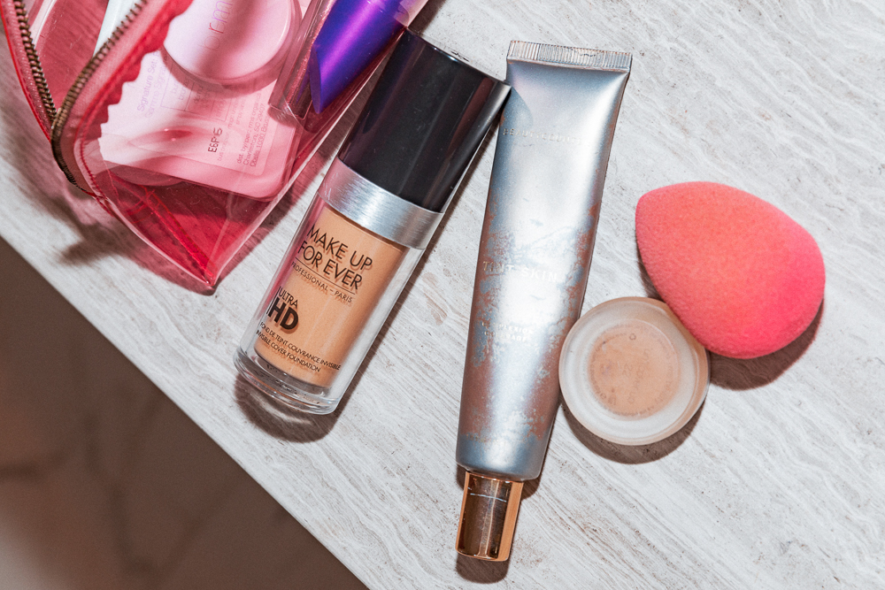 I’m not into layering on lots of makeup. More reinforcing and enhancing the natural elements. Sometimes I’ll pay attention on set, because I like how they do the models very minimally. I really love how the Caudalie Beauty Elixir smells, so I will use that to set my makeup. For sunscreen I like the Aesop SPF 15, or the Anthelios from La Roche-Posay with SPF 50. Then I’ll use use this Beautycounter Skin Tint for a little light foundation. I love the Beauty Blender sponge, it's amazing! You just get it a little wet, and squeeze it, and it helps even everything out. I don’t usually use concealer but when I do it’s RMS Beauty “Un” Cover Up under my eyes and around my cheeks, where I get a tiny bit red.