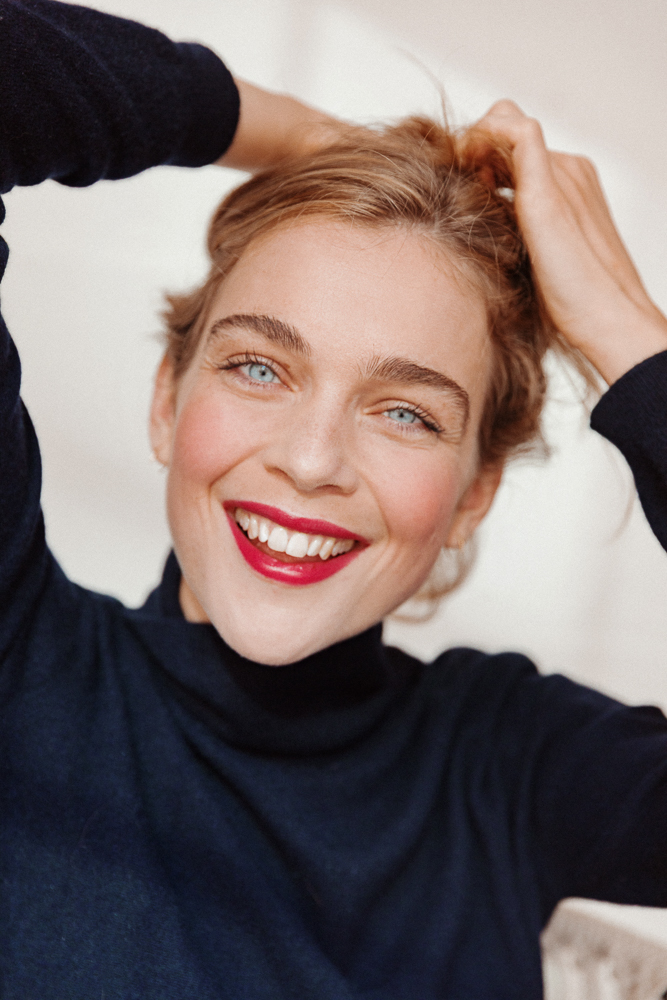 I like it when my hair isn’t too straight—I like voluminous hair. I got highlights pretty recently in Amsterdam at this beautiful canal salon, Firki. I wanted to get highlights because it makes your hair feel like it has a little more life. It’s like when you take a long holiday where you had your hair in the sun a lot. I wanted that feeling, just a little bit sooner. I don’t cut my hair—I like it longer. I like to wash it at night and let it dry when I sleep. If I wash my hair in the morning, it dries all fuzzy. I switch my shampoos up a lot. The Phyto shampoo is good, and I also like the Kerastase one if my hair’s looking too fuzzy, and then I like the Weleda shampoo. Sometimes I’ll put some Kiehl’s Grooming Oil in it. It smells really good and it’s great for when my hair gets fuzzy. Sometimes it helps to put it all in a bun as well.