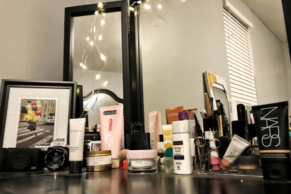 In the morning my routine is simple because I often wake up far later than I should. I soak a cotton pad with Bioderma Sensibio H20 followed by Pixie Glow Tonic and the Cosrx Snail Mucin. I use Glossier’s Priming Moisturizer Rich in the winter as well as Neutrogena’s Ultra Sheer Liquid Sunscreen SPF 70.