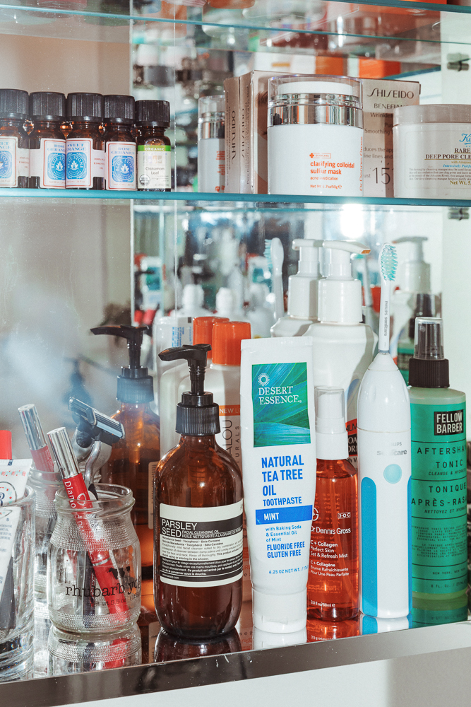 Hannah: I always try to alternate between all my products because I feel like your skin and your hair get really used to stuff, so I like to shock it. I’m really loving the Aesop Facial Cleansing Oil right now. I’m also obsessed with masks. I keep them in the refrigerator and I always bring one when I travel. One of the ones I’m loving right now is the Dr. Dennis Gross sulphur mask. The second you put it on, it minimizes your pores.