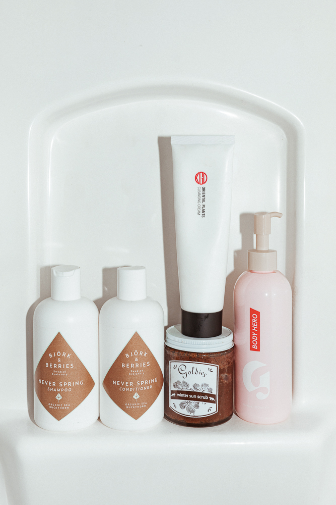 Hannah: I love cleansing oils for the body too. Glossier’s Body Hero and the Le Labo shower oil are both really good. I’ll do about two days of oil, and then one day of foaming cleanser. And then for body lotion, Marian got me this Björk & Berries body lotion from Stockholm that I love. It smells so good. It has sea buckthorn berries in it.