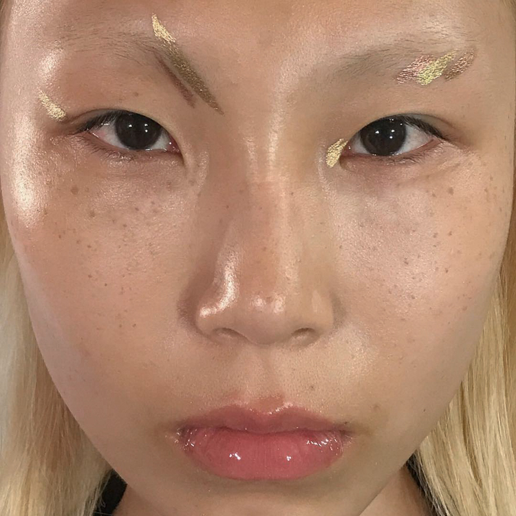 “When I first started doing makeup I was putting it on myself with my fingers using different colors. That's how I started. It was my teenage fantasy. I basically was going to rave parties in the early 2000s in Australia, and I used to do makeup on myself with neon paints. I used to do makeup on my friends, too. Very haphazard—not makeup in the traditional sense. Just bits of paint, pencil. Then I met this dude who worked at the MAC counter, and I ended up getting a job there. I moved to London in 2007. At the time, people going to the clubs there wore a lot of makeup. I was working at the door of this one club, and I’d go wearing all this makeup and my high-heeled boots. People thought my makeup was cool. They were like, can you do that for a shoot? And I was like, oh yeah, sure... [Laughs] So I started getting booked for things. They were my first shoots ever in London. I guess it’s progressed from there. I've been working with Harley Weir [Editor’s note: Definitely one of our favorite, most interesting beauty photographers out there right now] for about two years. We did a shoot for French Vogue with Raquel Zimmerman, and I put all these white polka dots on her face. Sadly the picture never ended up being used in the magazine, but I guess she thought it was really unique, and now we work together all the time.