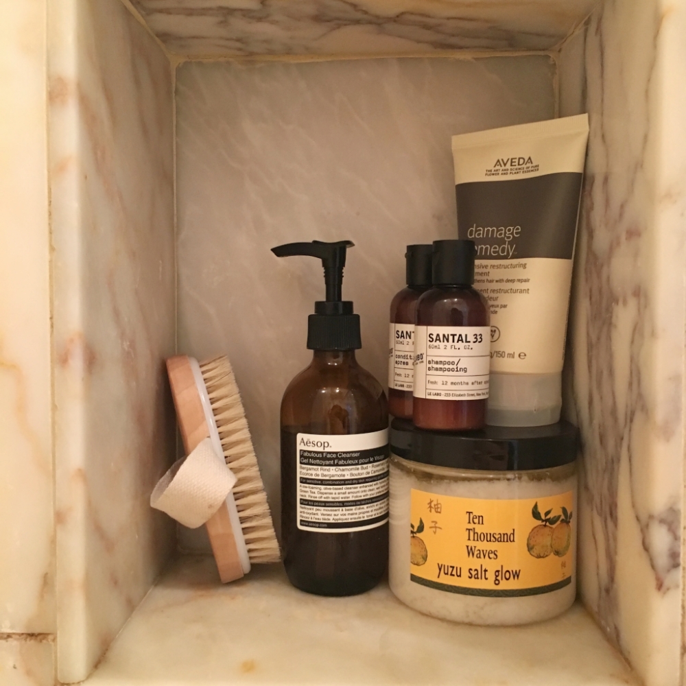 For nighttime, before I shower I’ll remove my makeup with Bioderma Sensibio H20. Then I’ll dry brush. The only hair product that I rebuy time and time again is Aveda Damage Remedy Hair Mask. I’ve been able to really stretch time between haircuts with this product. After my shower, I put Thayer’s Rose Witch Hazel Toner all over my body and apply either Lubriderm or Jergens Natural Glow Lotion. I cannot get out of the shower and not apply lotion all over my body. I hate the feeling of dry skin, and can't sleep without this step.