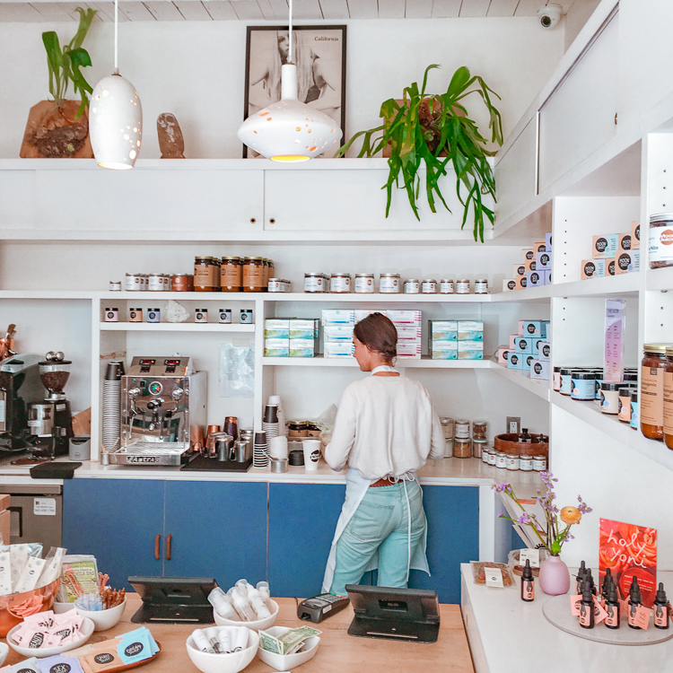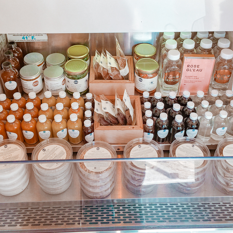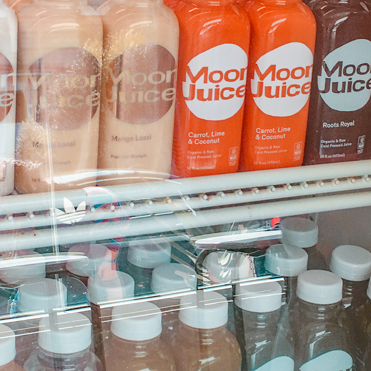 The headquarters for this lifestyle are called Moon Juice, the very healthy, "activated" apothecary-meets-snack-shop founded by Amanda Chantal Bacon. I was spending the day in Venice Beach and popped by her original location (now there are three) to grab provisions for the day. When I arrived, there was a line out the door—a mix of skater dudes, businessmen, ladies in a rush... No peasant tops and Birkenstocks to be seen, actually. (Moon Juice isn't as niche as I thought it was.) Everyone knew what they wanted except me. So I asked around, and what I landed on was a Mint Chip shake (made with ashwagandha, tocos, spirit powder, maca, spirulina, mint oil, and mesquite). And can I tell you? It tasted incredible. So much so I felt the urge to linger and just keep thanking the girl who made it. They'll make you anything you want, the combinations are endless. There's a potion there for almost any ailment or discomfort. It certainly felt better after a travel diet of Shake Shack and room service. On my way out, I also grabbed some super yummy seed crisps and these little raw donut things and took them on a walk alongside the coast. After a few hours, my Venice dream had to end and I was off to a shoot. But I spent the rest of the day feeling like I found my nook in Cali, and a little high on life.